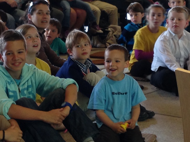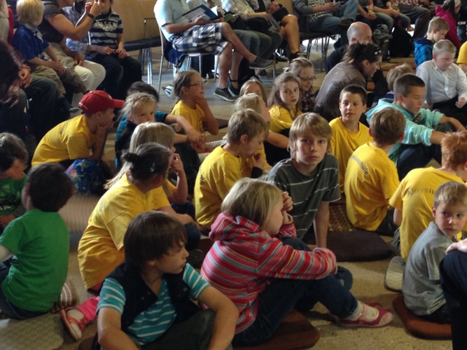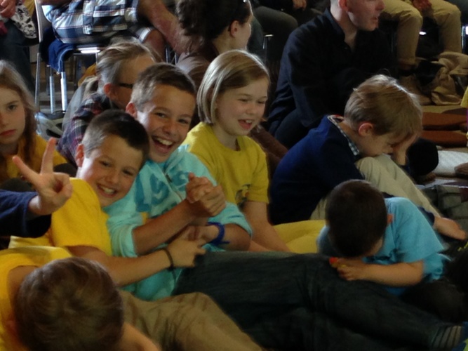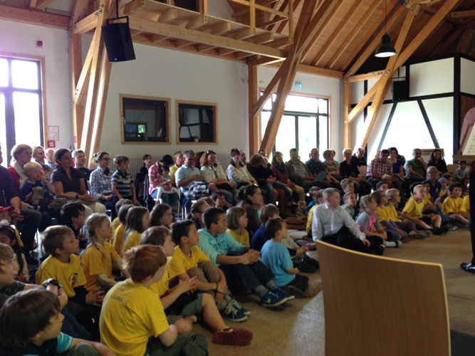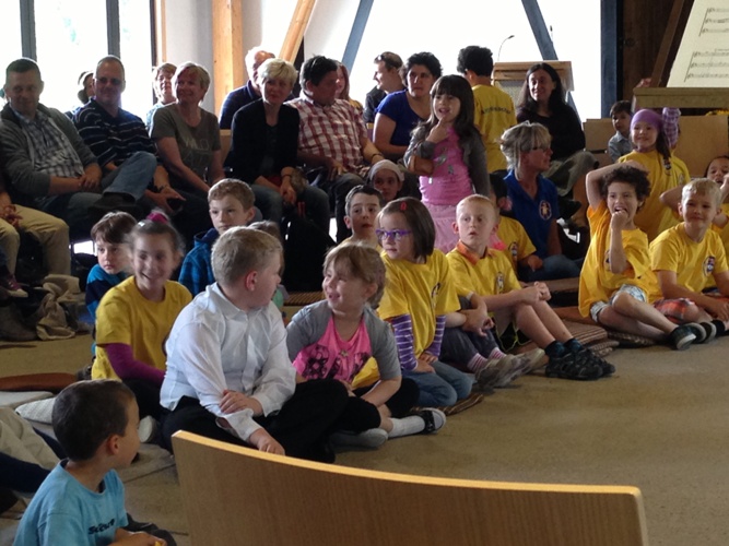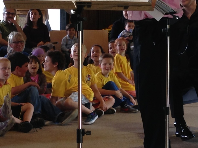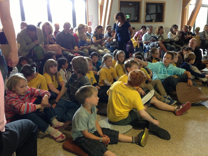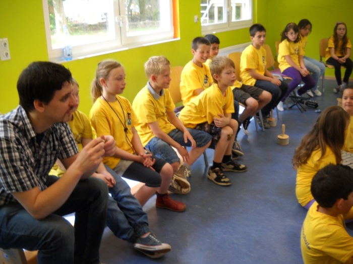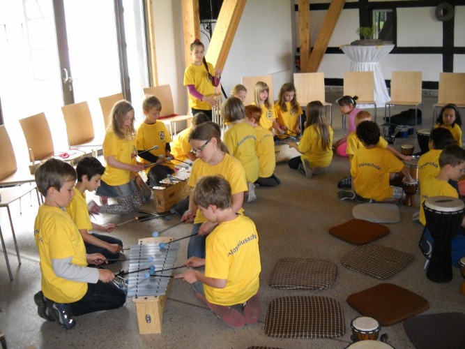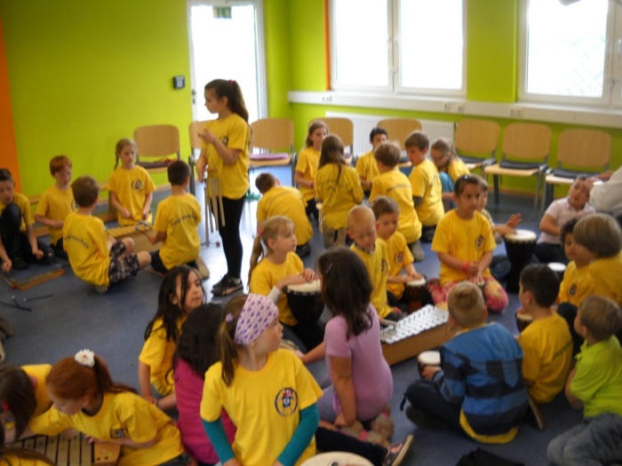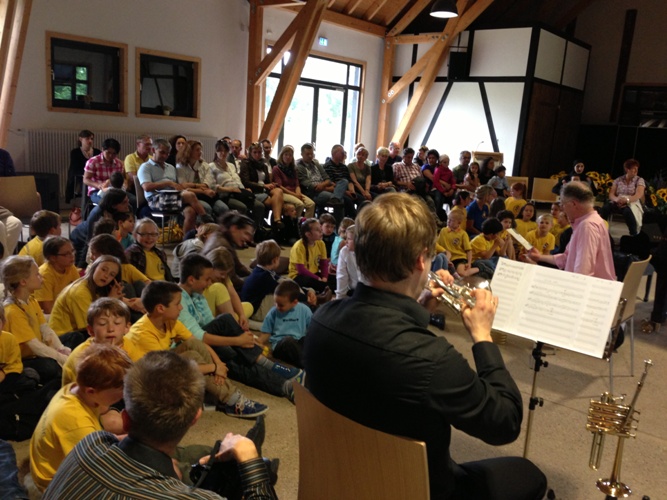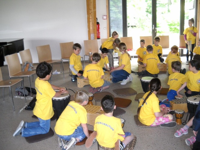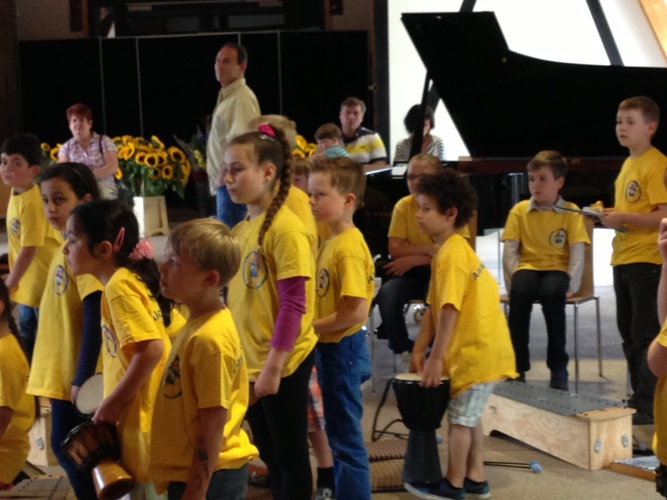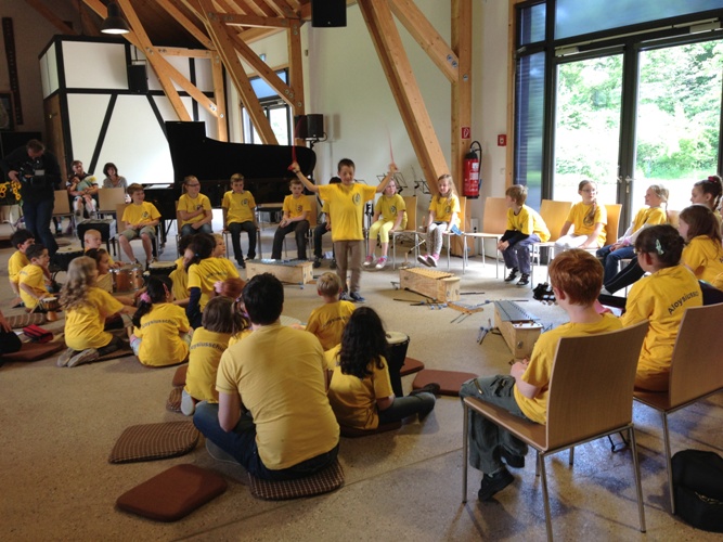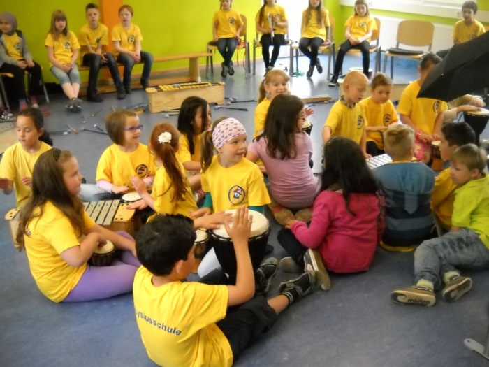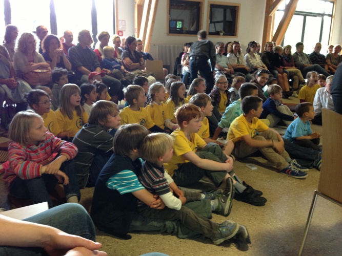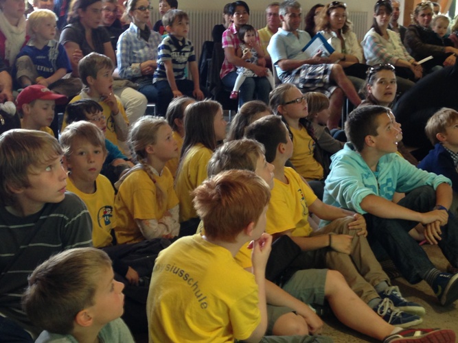Hier seht ihr die gemeinsame Probe mit beiden Klassen.
