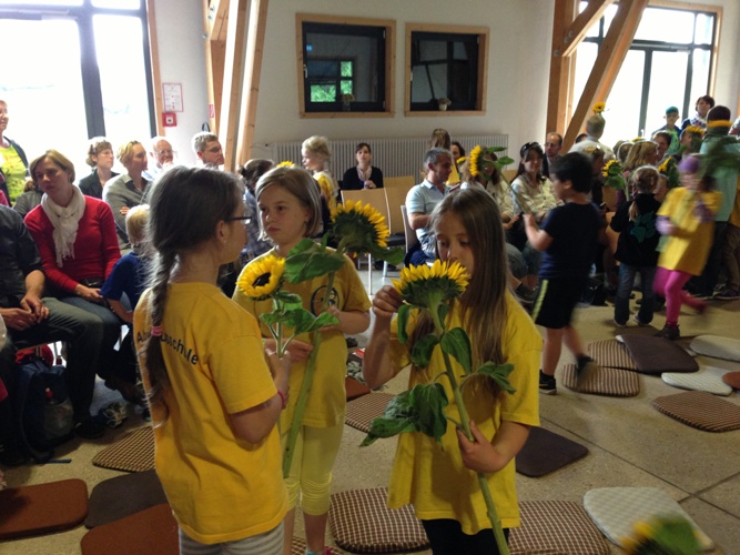 Am Schluss bekamen alle Kinderkünstler eine Sonnenblume