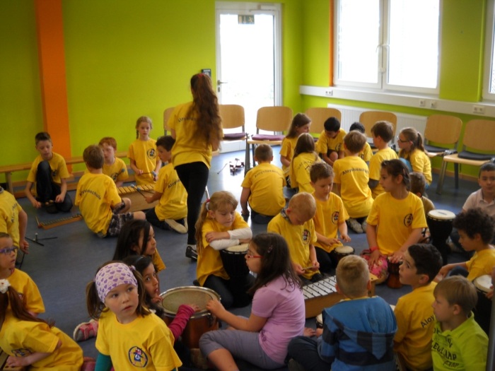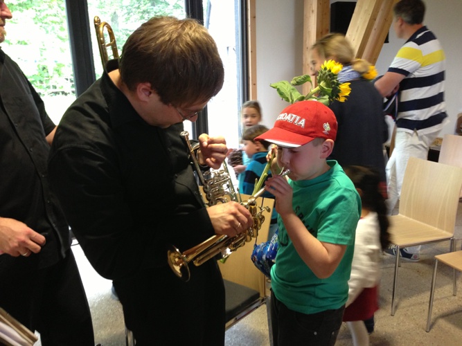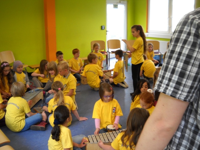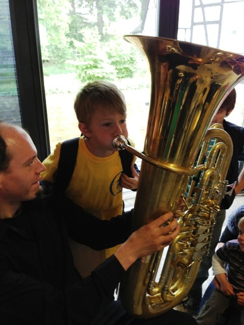 und wir durften die Instrumente des Orchesters ausprobieren.