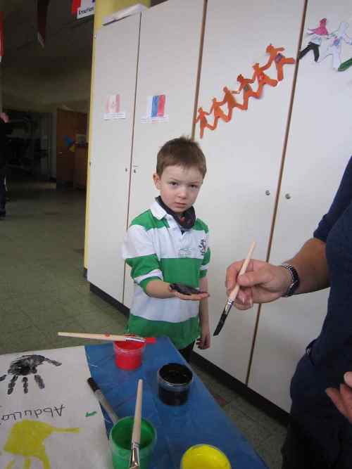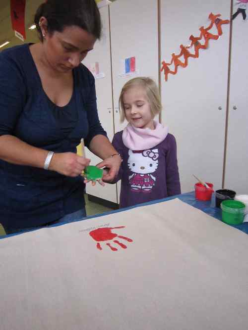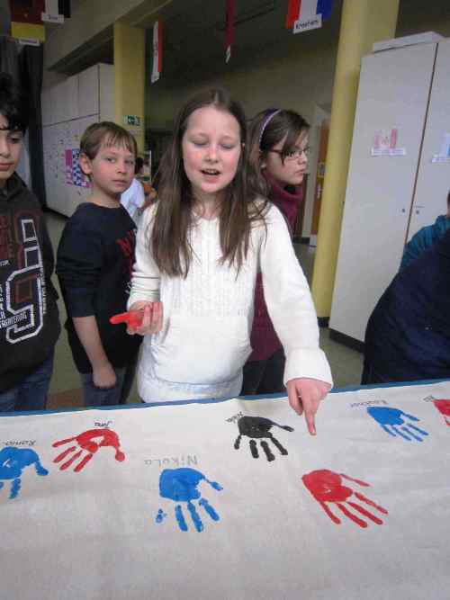 Zur Erinnerung gestalteten wir zwei "Freundschaftsstücher" mit den Handabdrücken aller Aloys-Kinder.