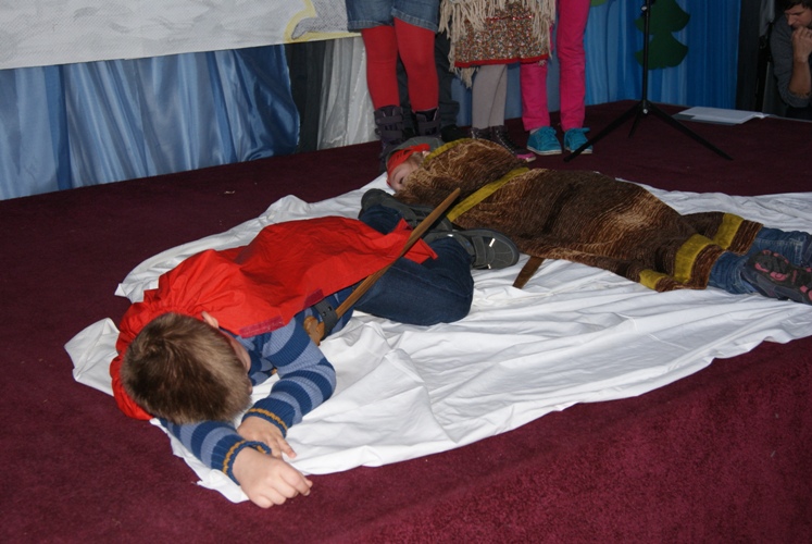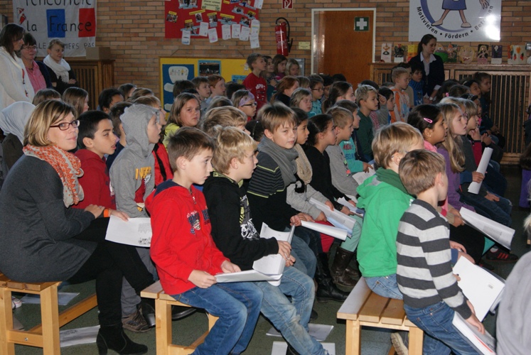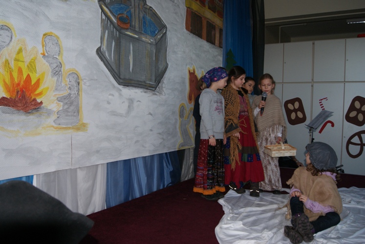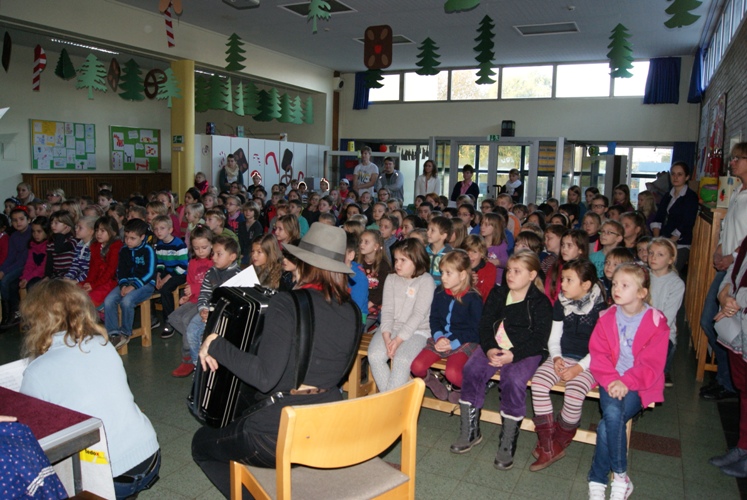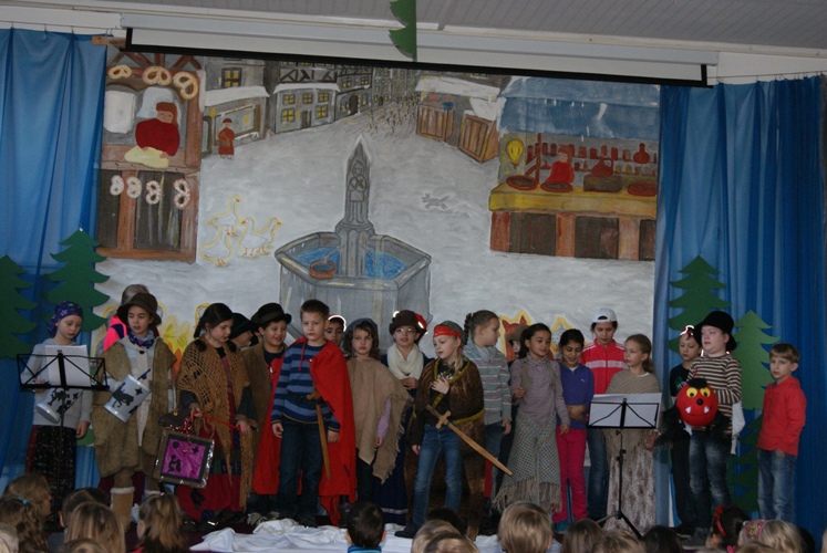 Die Klasse 3b führte ihr Sankt Martinsstück auf, wir sangen gemeinsam und anschließend teilten wir die Brezel.