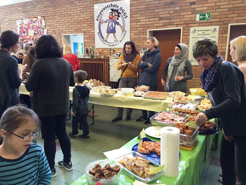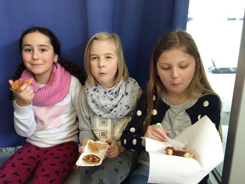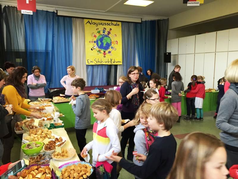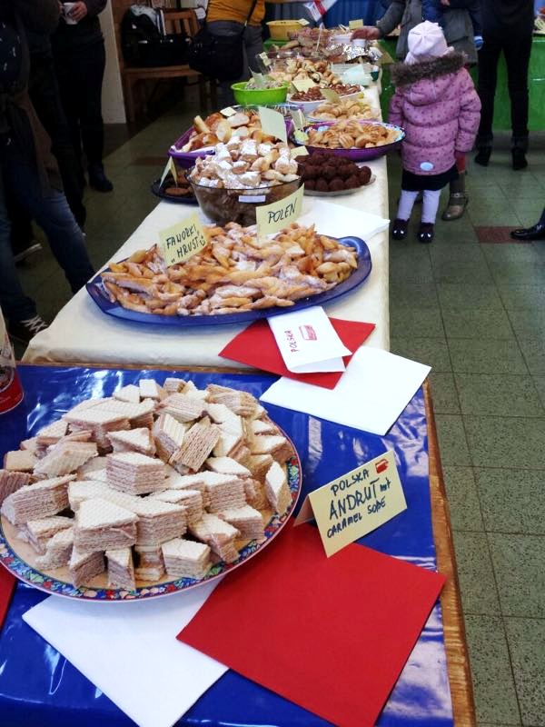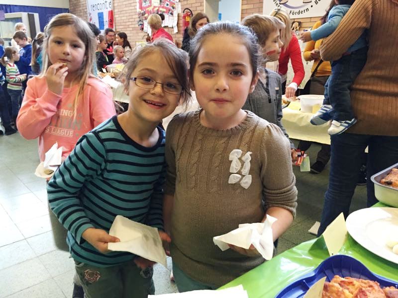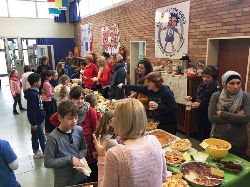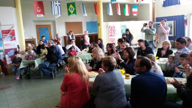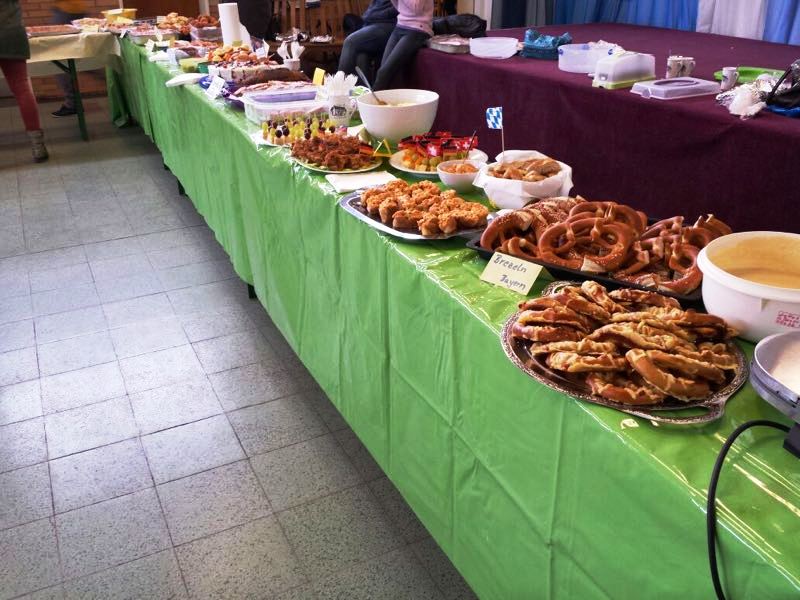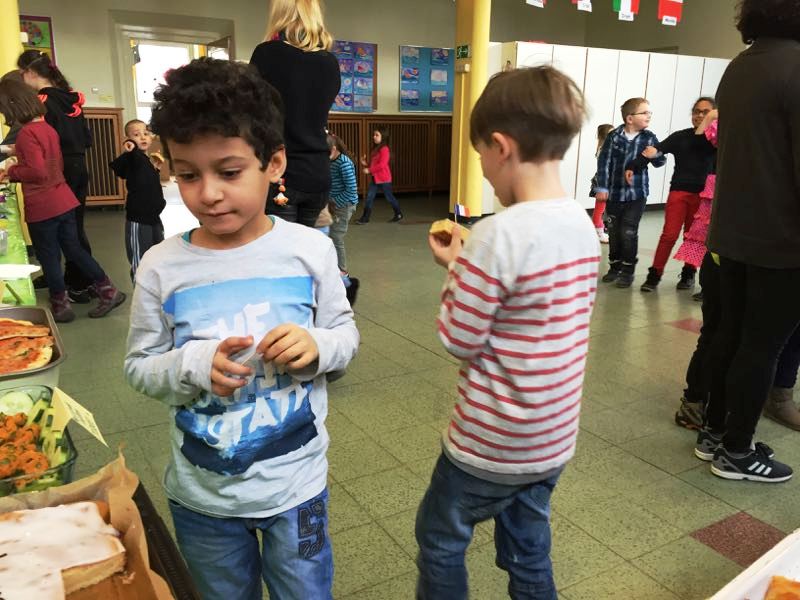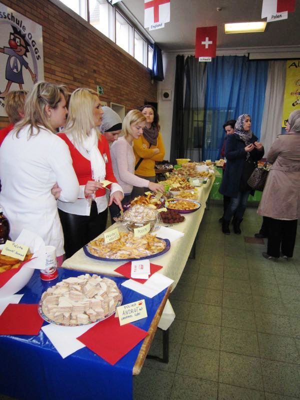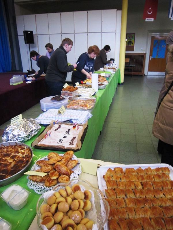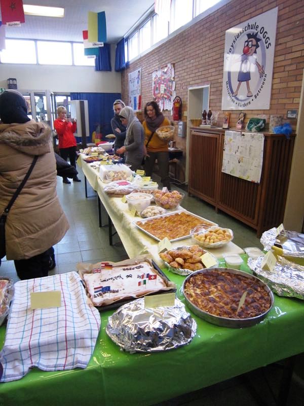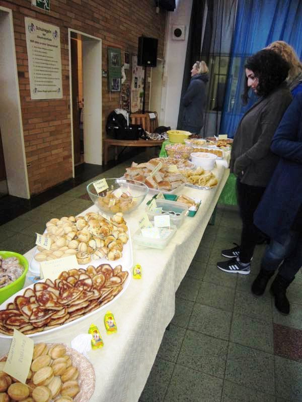 zwischendurch stärkten wir alle uns am Buffet der Kulturen, das die Eltern zubereitet hatten.