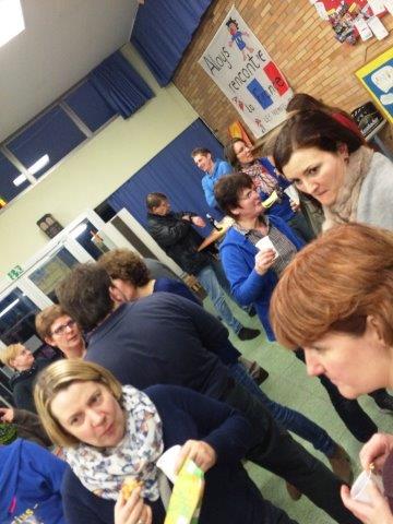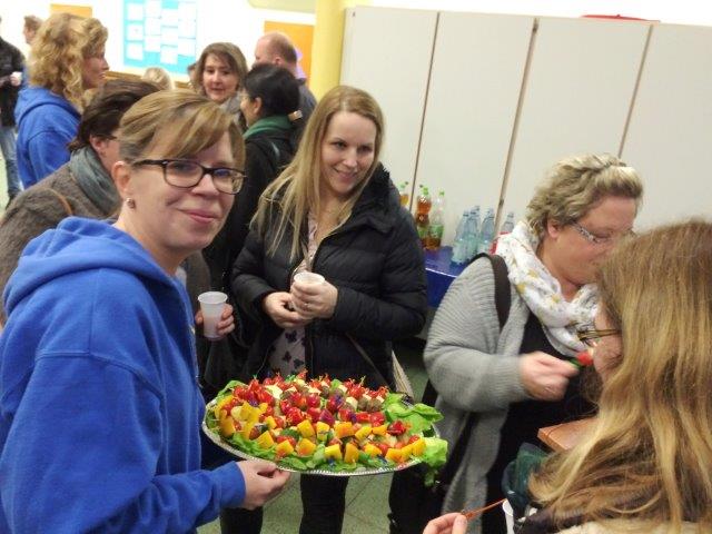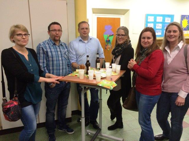 Das Kollegium bereitete die Pausenhalle und ein kleines Buffet vor; der Förderverein spendierte die Getränke.