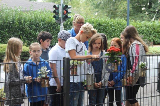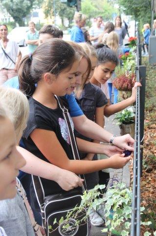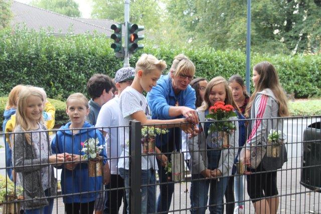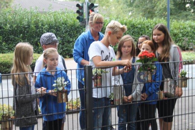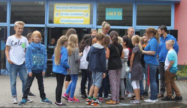 Die Kinder, Eltern und Lehrerinnen des Durchganges 2012 - 2016 trafen sich noch einmal in ihrer Aloysiusschule, und brachten die ersten Liebesschlösser am Zaun vor der Schule an.