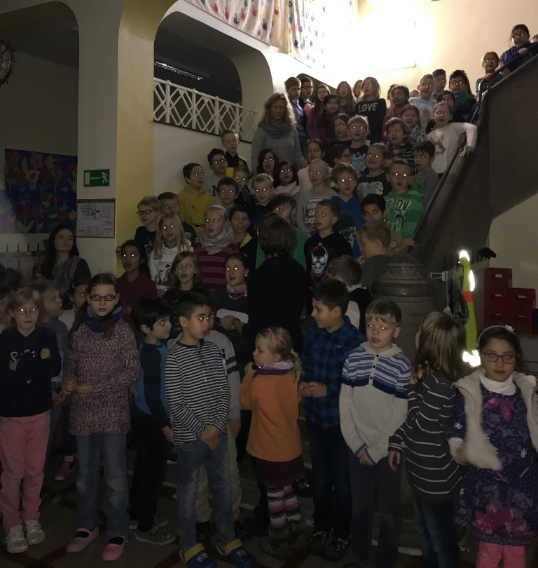 Die ganze Schule hat gesungen und die 3. Klassen haben noch ein ganz besonderes Lied vorgetragen.