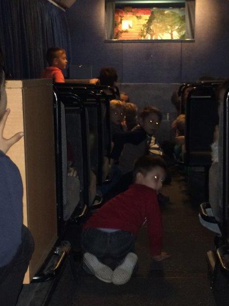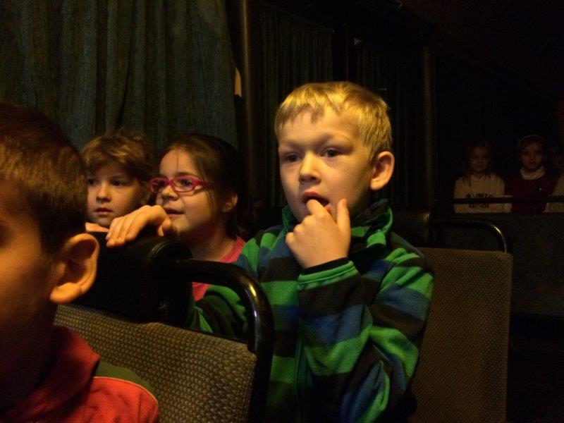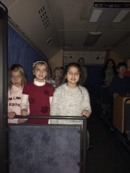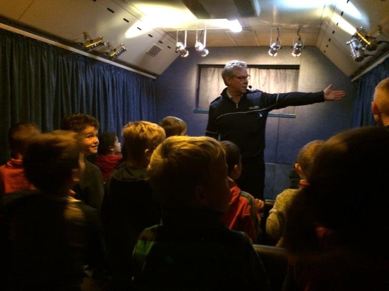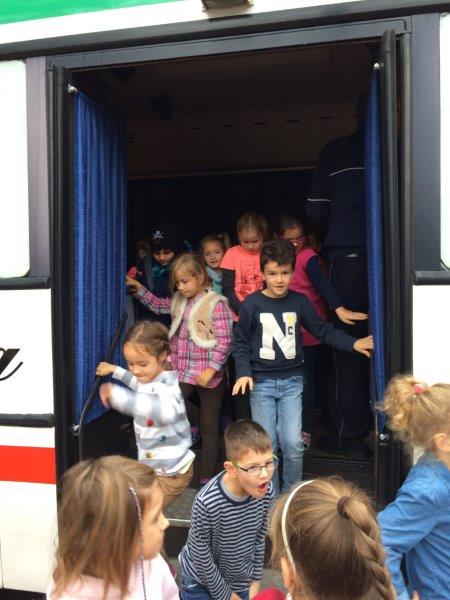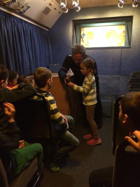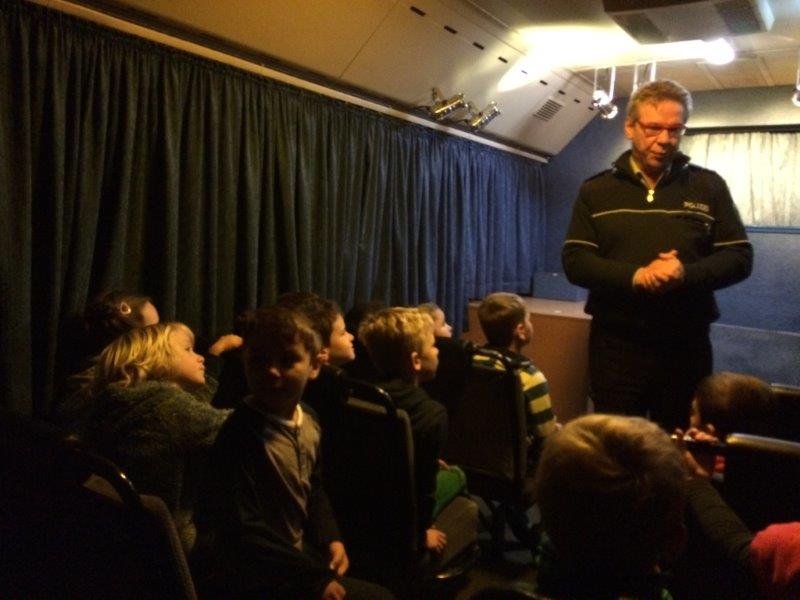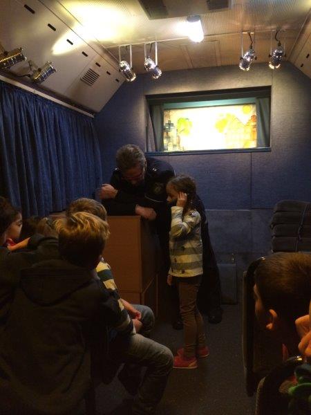 Heute kam die Verkehrspuppenbühne, der "Wuschelbus", zu uns.