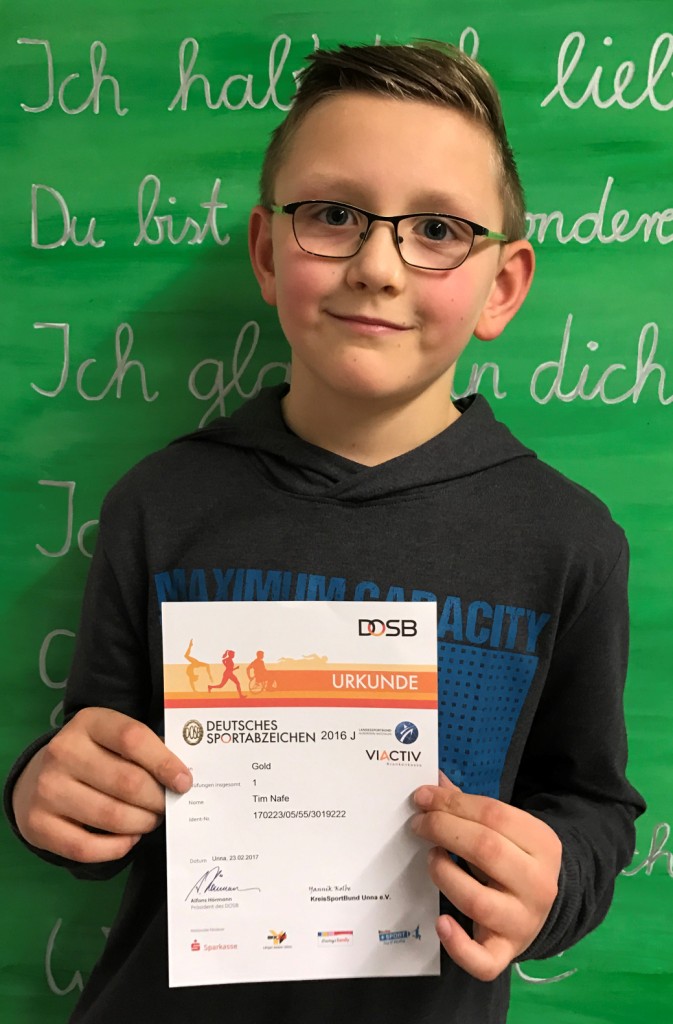 Auch das Sportabzeichen von Tim kam mit etwas Verspätung an....