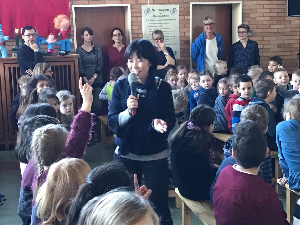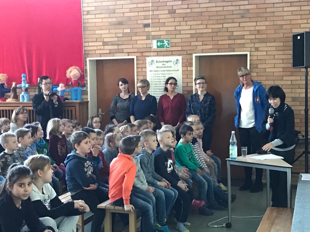 In dieser Woche hatten wir ganz besonderen Besuch: Frau Prof. Kana Hamatani aus Japan besuchte unsere schöne Aloysiusschule. Sie interessierte sich dafür, wie wir es schaffen, mit den vielen verschiedenen Kulturen an unserer Schule so gute Ergebnisse bei den Vergleichsarbeiten, bei Lernstandserhebungen und beim Übergang in die weiterführende Schule (Sekundarstufe 1) zu erzielen.