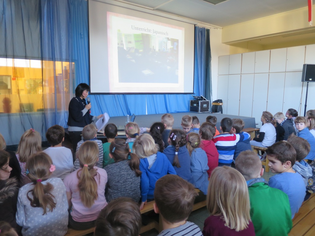 Frau Prof. Hamatani schaute sich die ganze Schule und den Unterricht an. Sie war total begeistert von der tollen Einrichtung, der gestalteten Lernumgebung, dem guten Unterricht, dem hohen Lernstand der Kinder und den bewährten Konzepten.