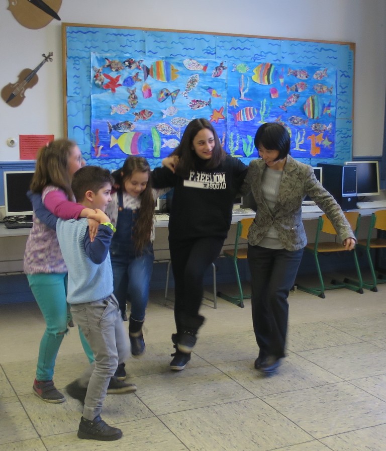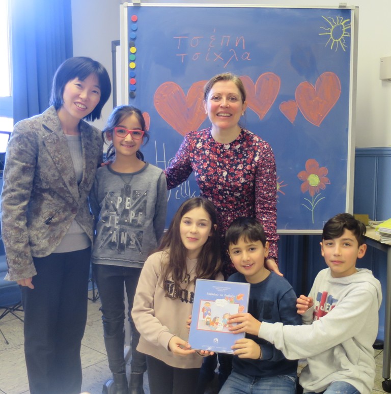 Frau Prof. Hamatani erzählte uns vom Schulalltag in Japan und nahm auch begeistert am Griechischunterricht teil.