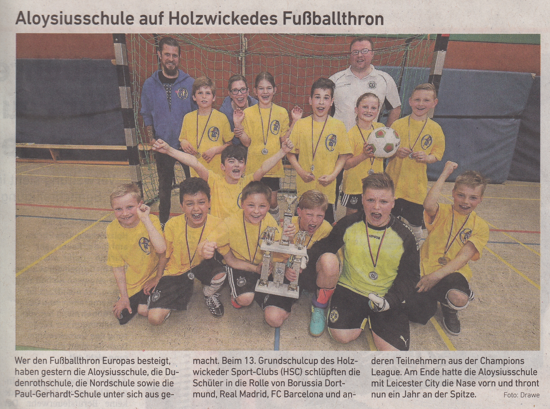 Alle Kinder, Eltern und das Aloys-Team fieberten mit beim diesjährigen Holzwickeder Grundschulcup. Beide Aloysius-Teams haben super gespielt und so sind wir Meister geworden.