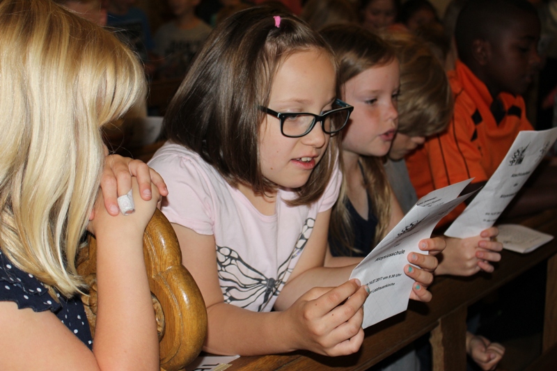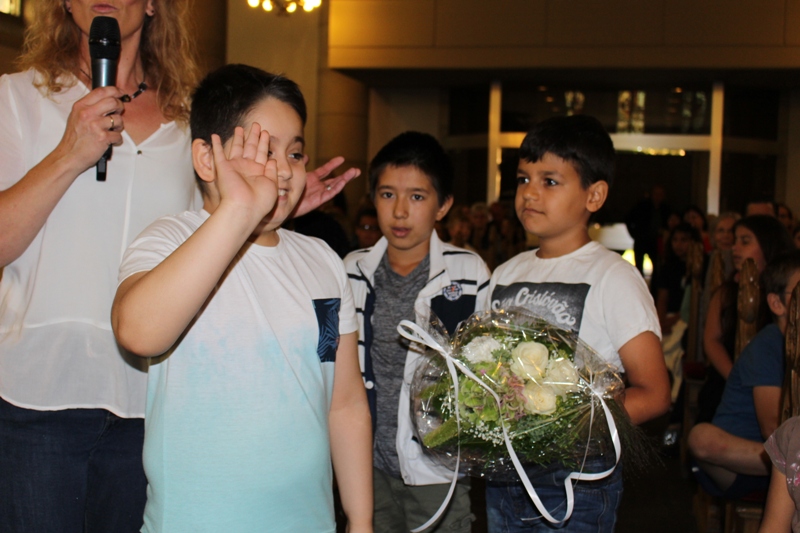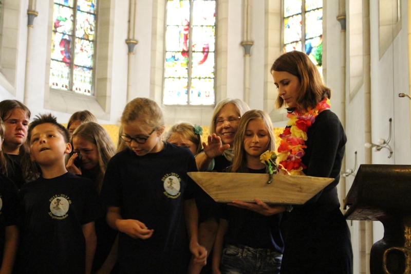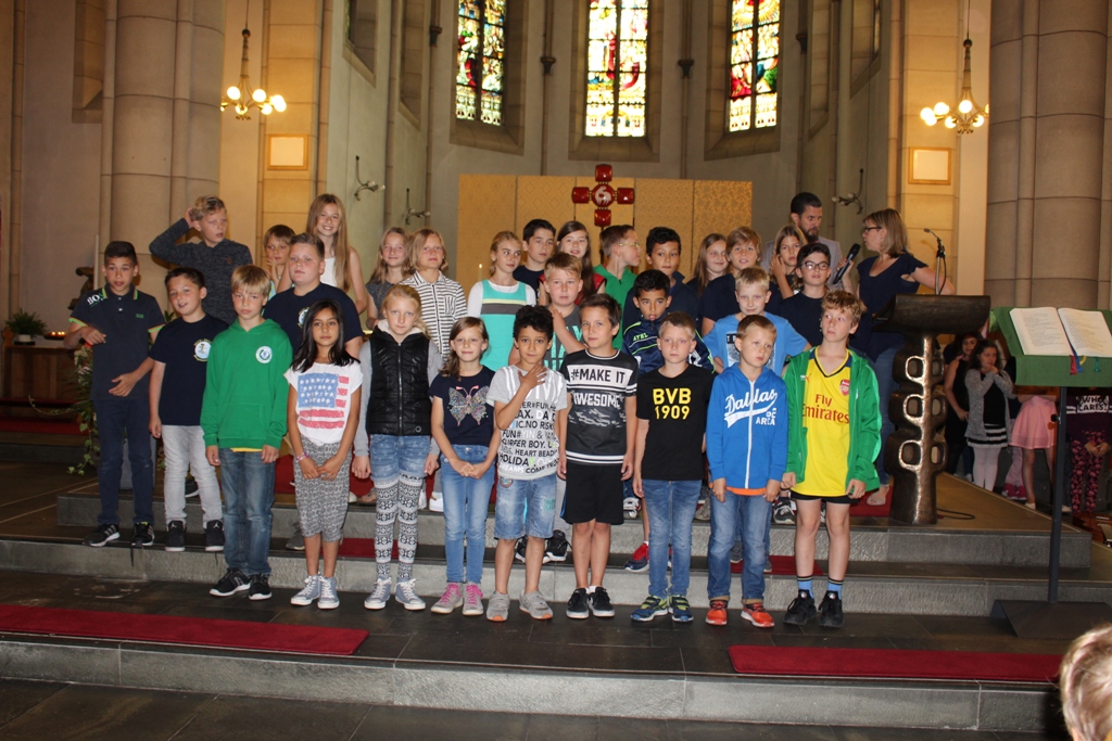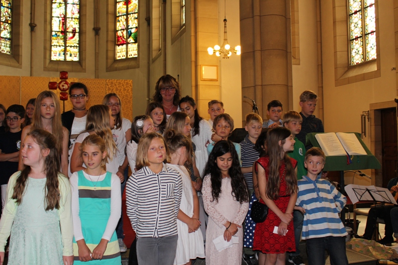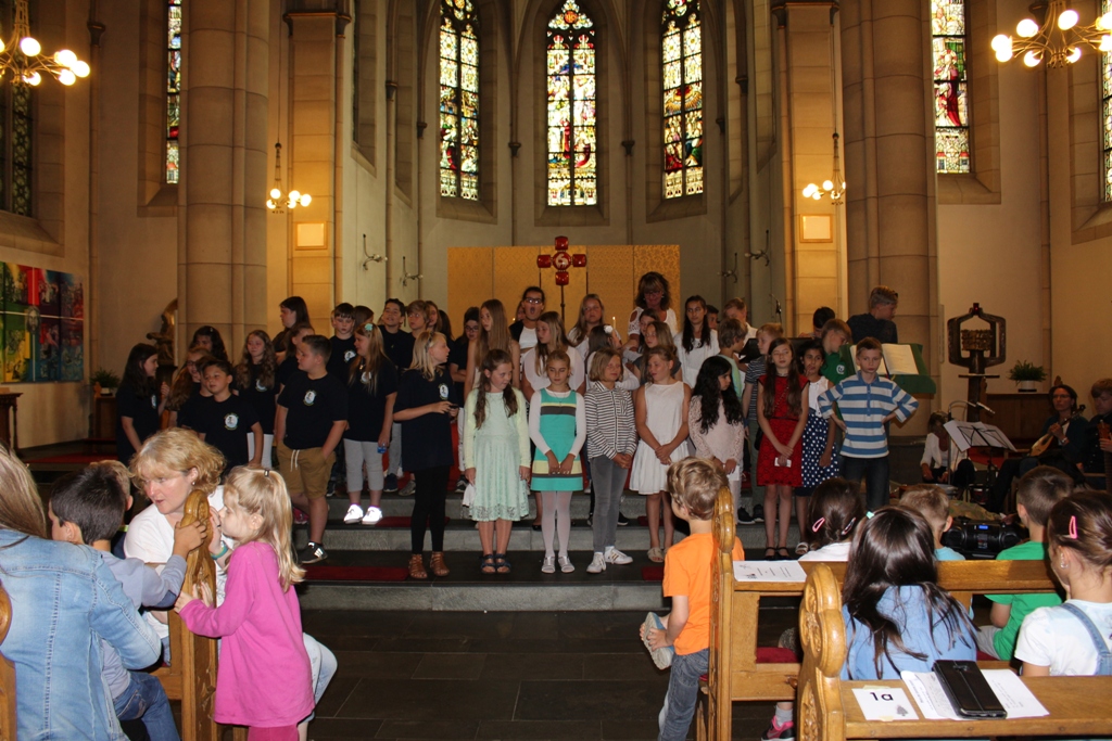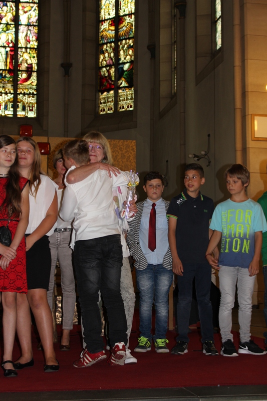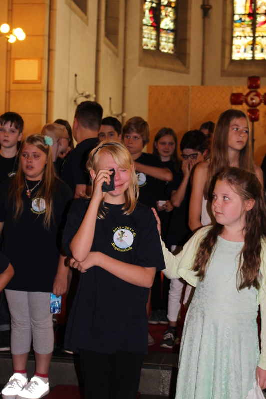 und zum Schluss kam das Abschiedslied, bei dem natürlich auch Frau Skupch und Frau Strege, die die Kinder vier Jahre lang in der OGS betreut hatten, mitsangen.