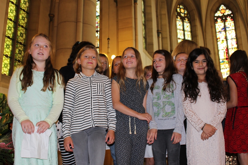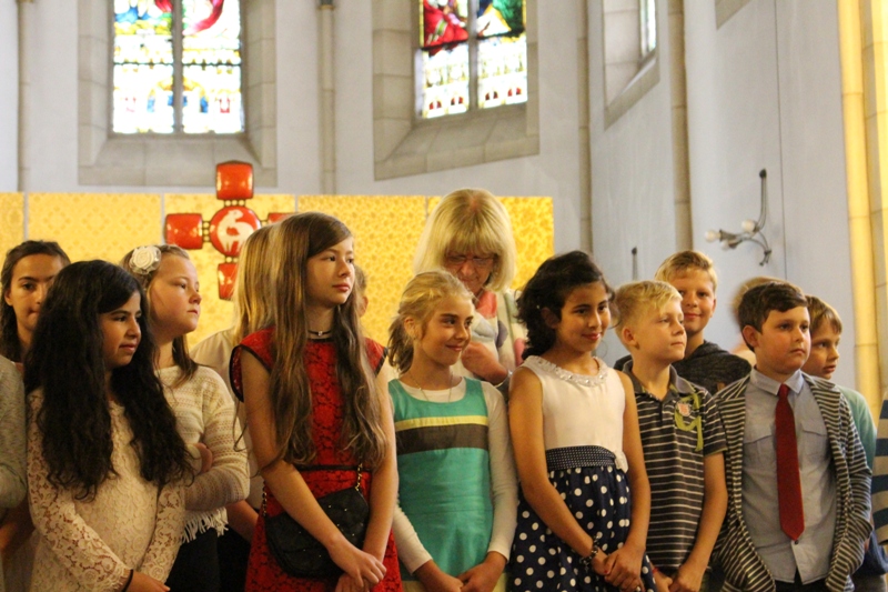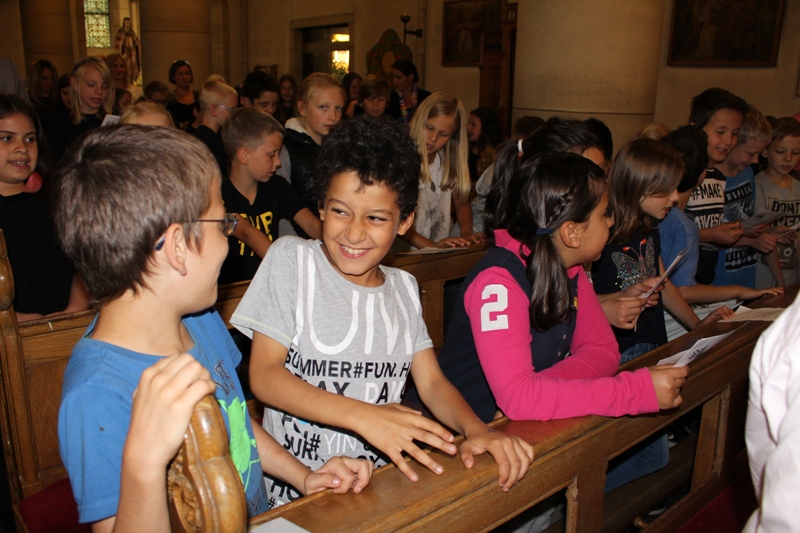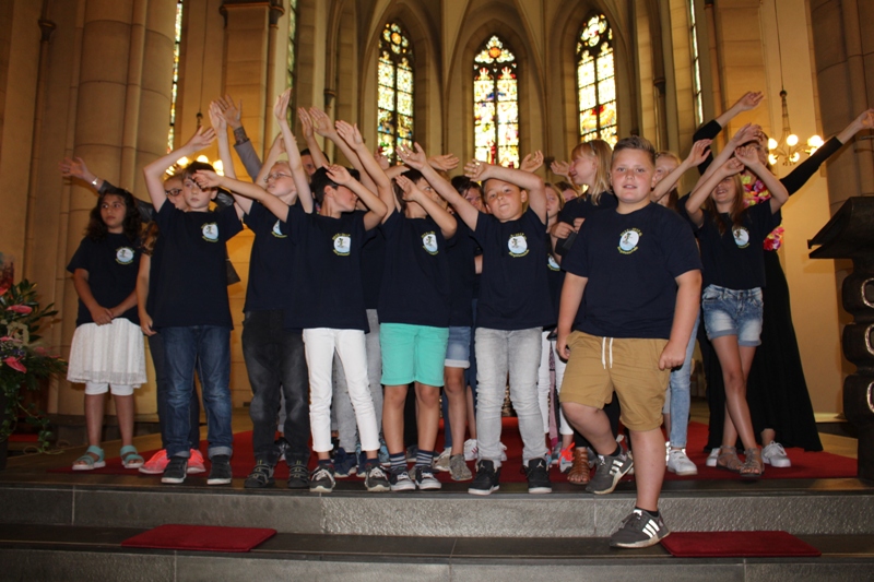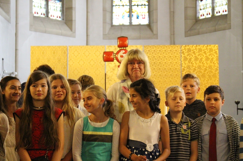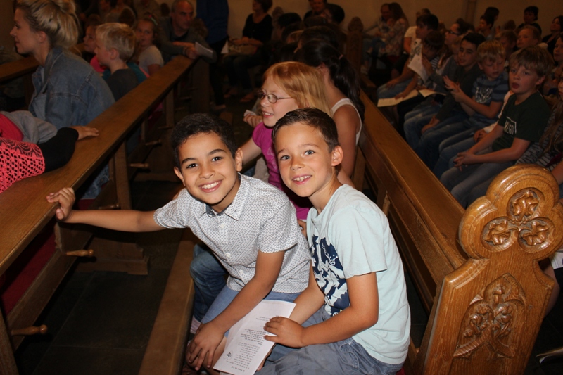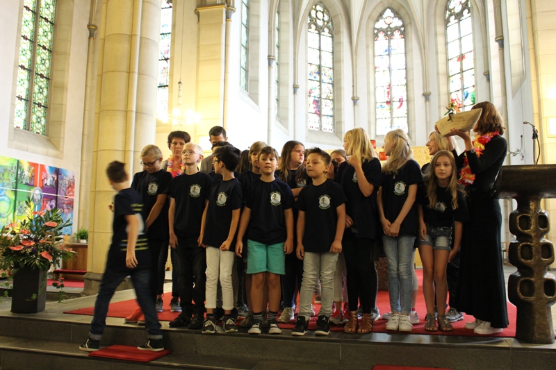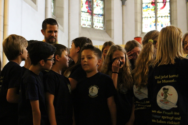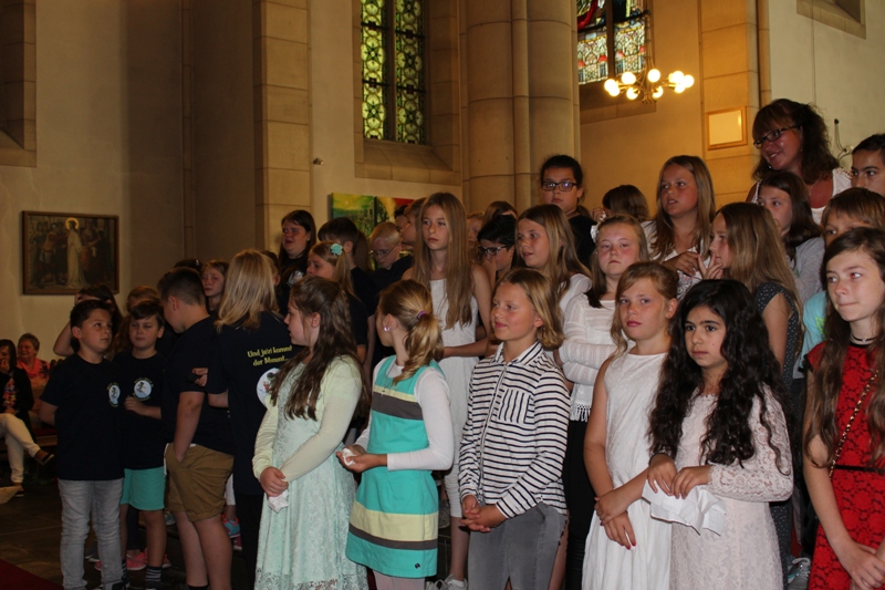 und zum Schluss kam das Abschiedslied, bei dem natürlich auch Frau Skupch und Frau Strege, die die Kinder vier Jahre lang in der OGS betreut hatten, mitsangen.