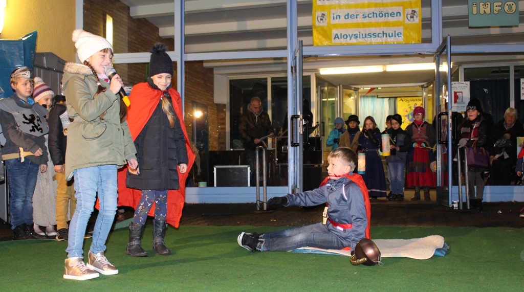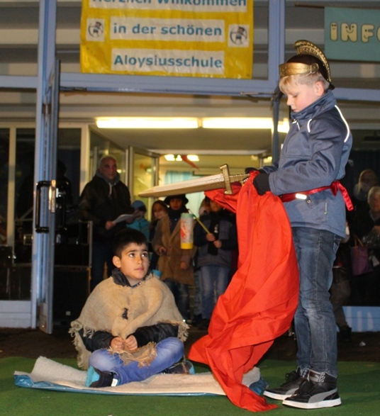 Schulhof warteten das Sankt Martinsspiel der Klasse 3a, Brezeln vom