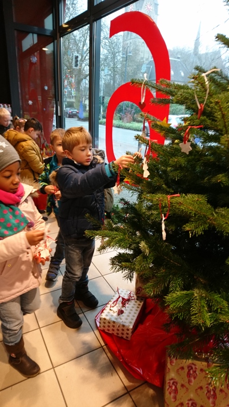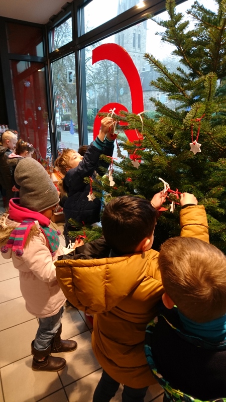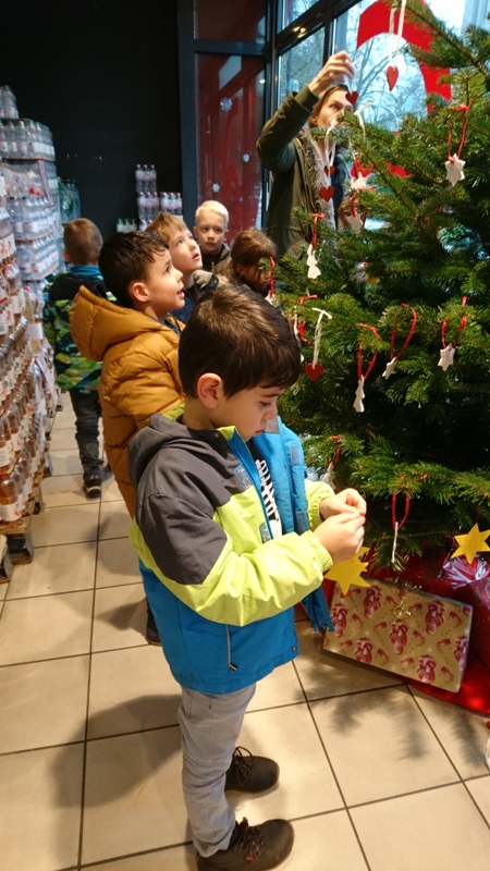 Heute haben unsere 1. Klassen den Tannenbaum bei REWE geschmückt.