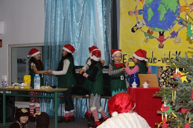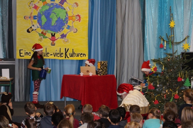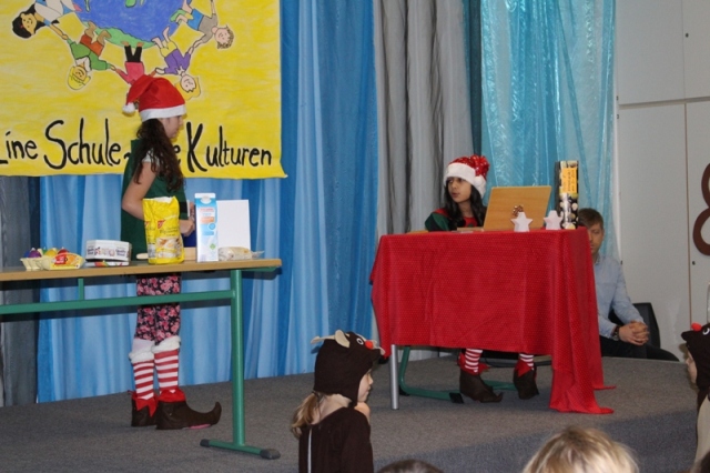 Theater-AG das Stück "Die Manager vom Weihnachtsmann" morgens für