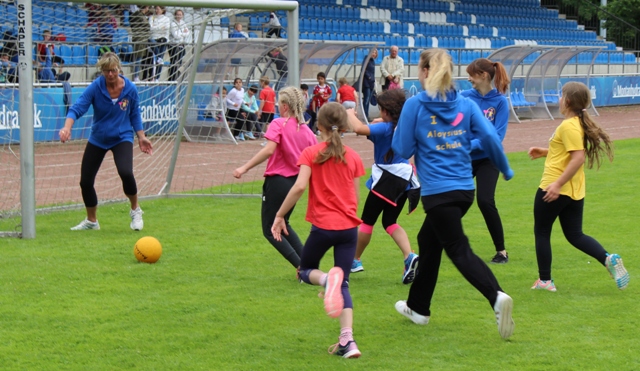 Fußballspiel der Fußball-Mädchen gegen die Lehrerinnen und der Siegerehrung.....