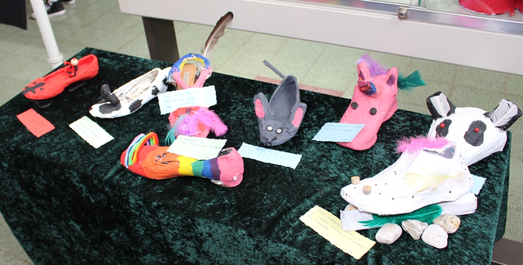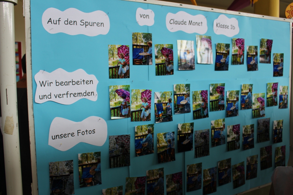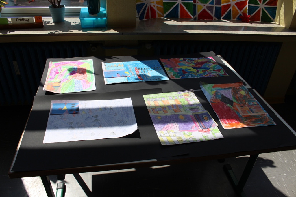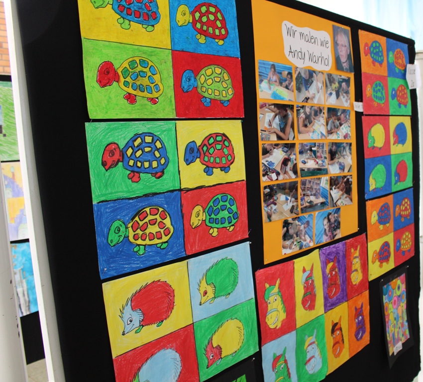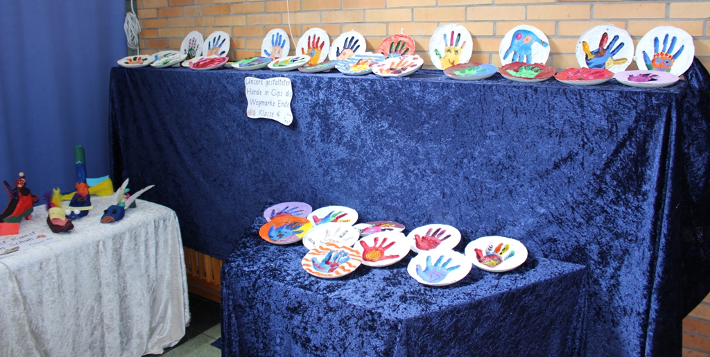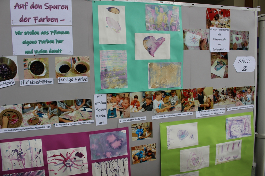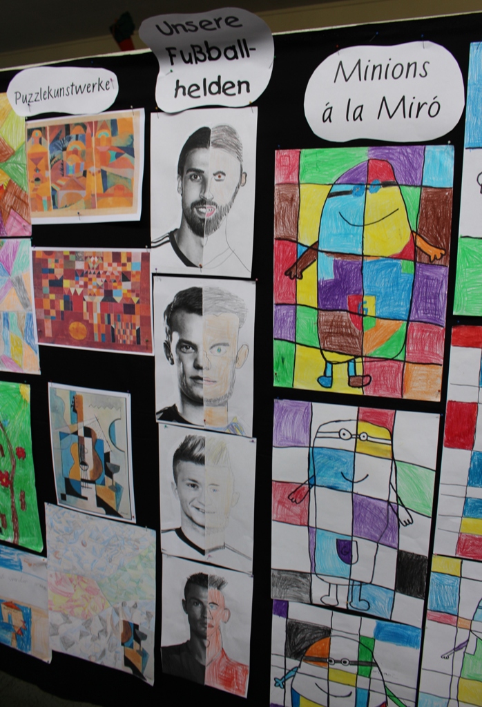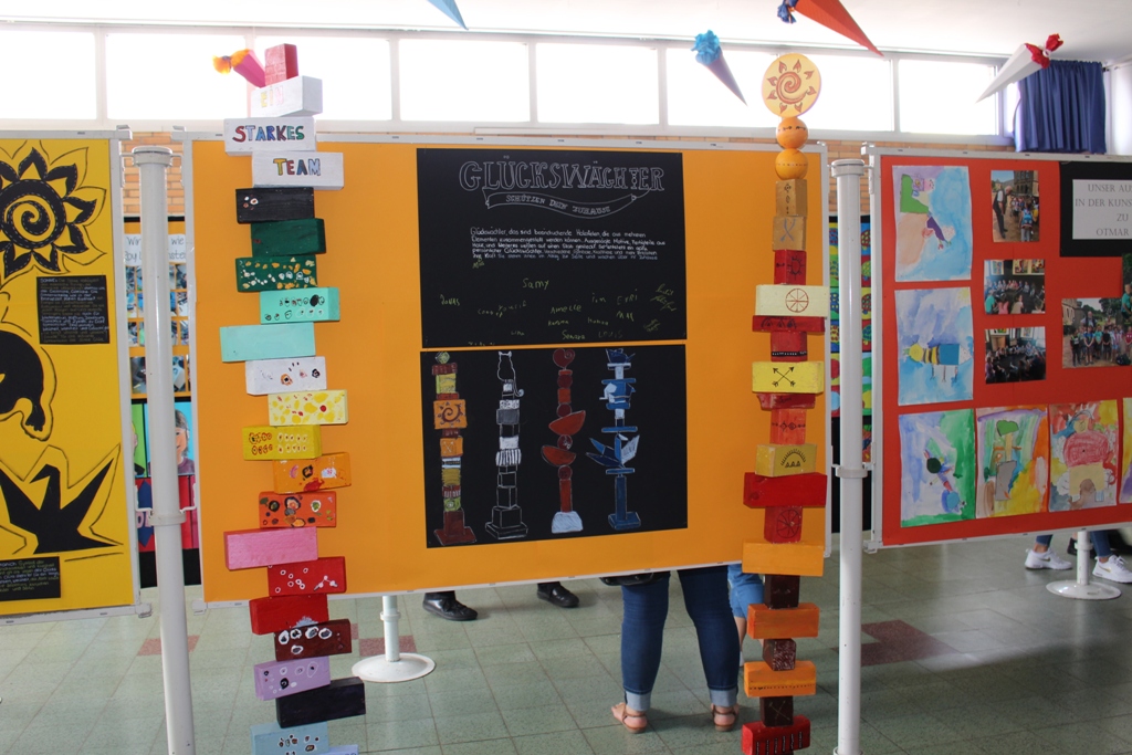 alle Kinder der Aloysiusschule mit Künstlern und verschiedenen Mal-
