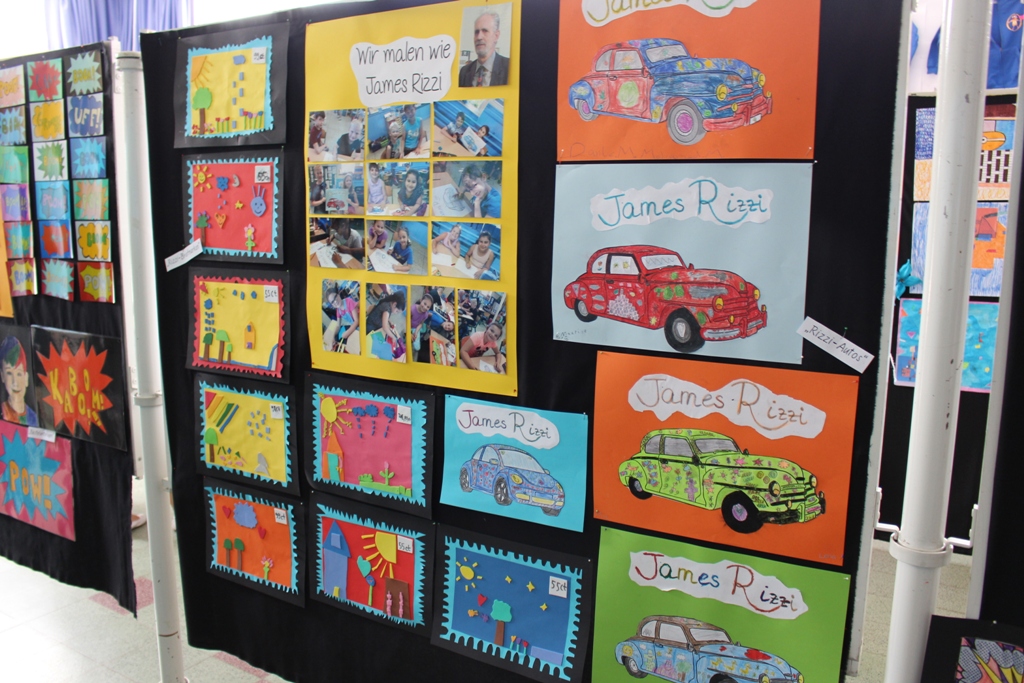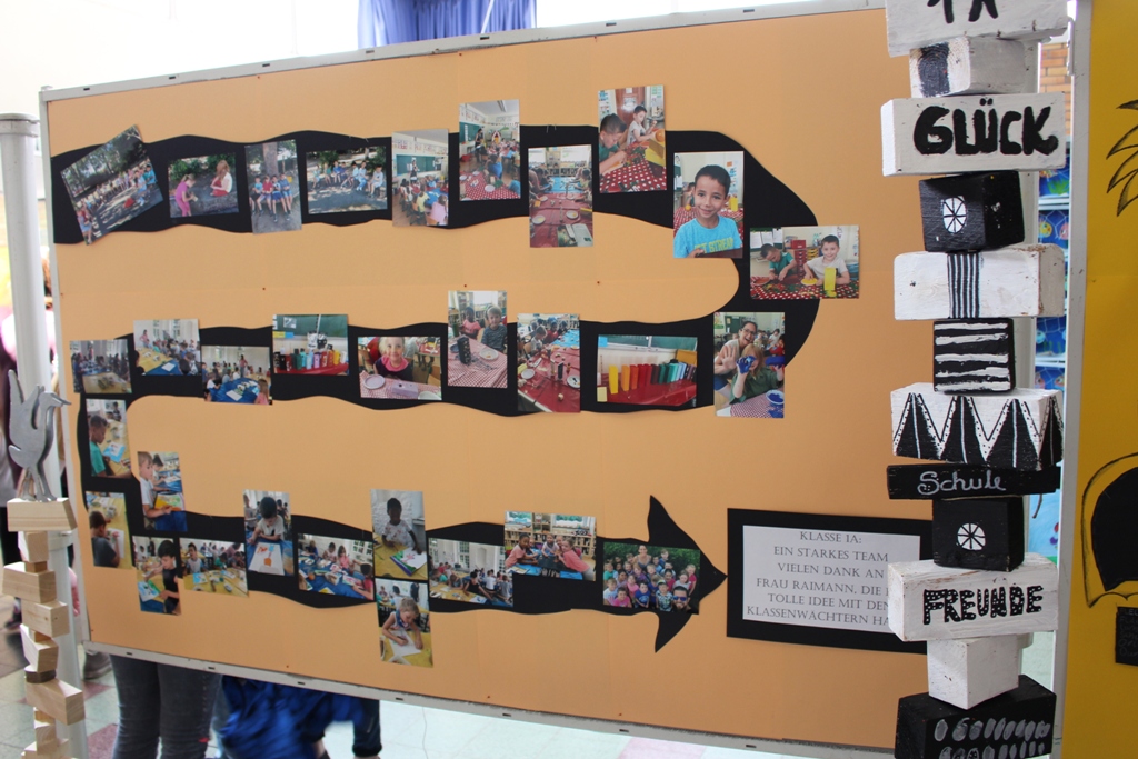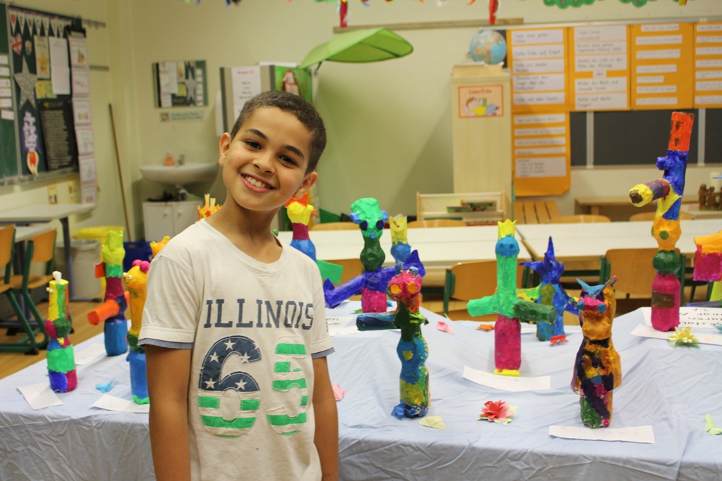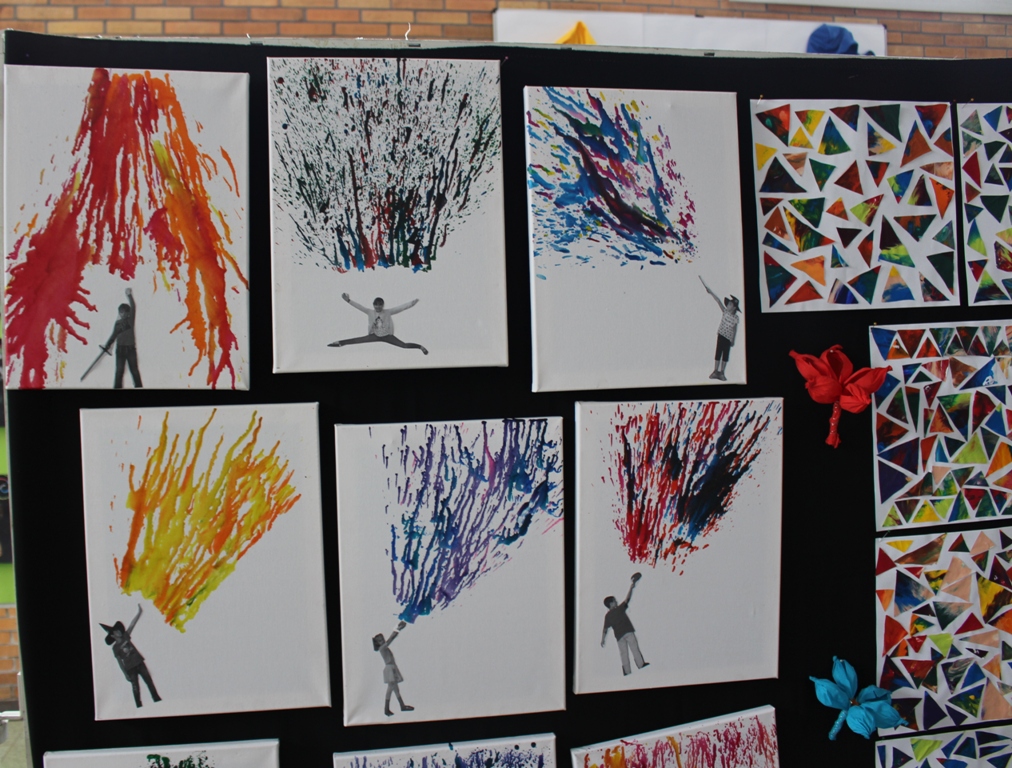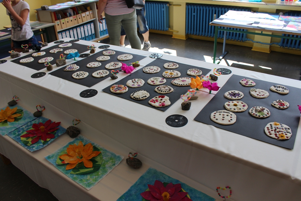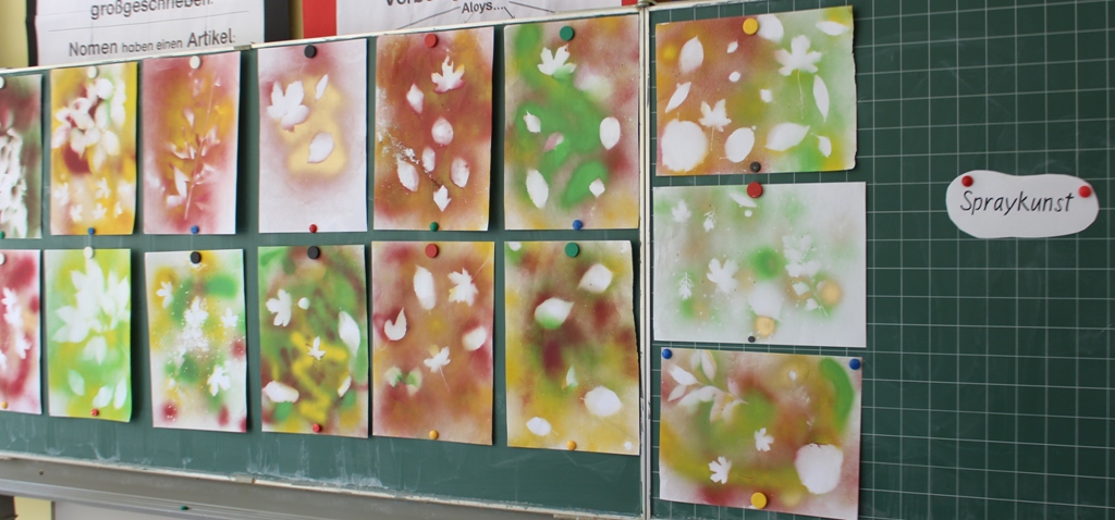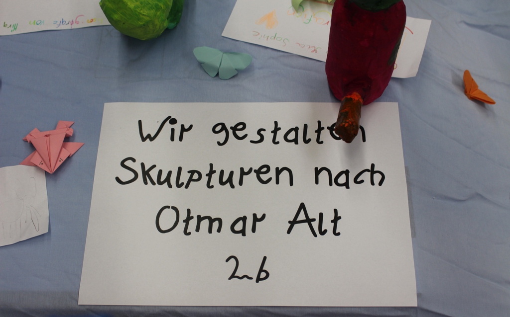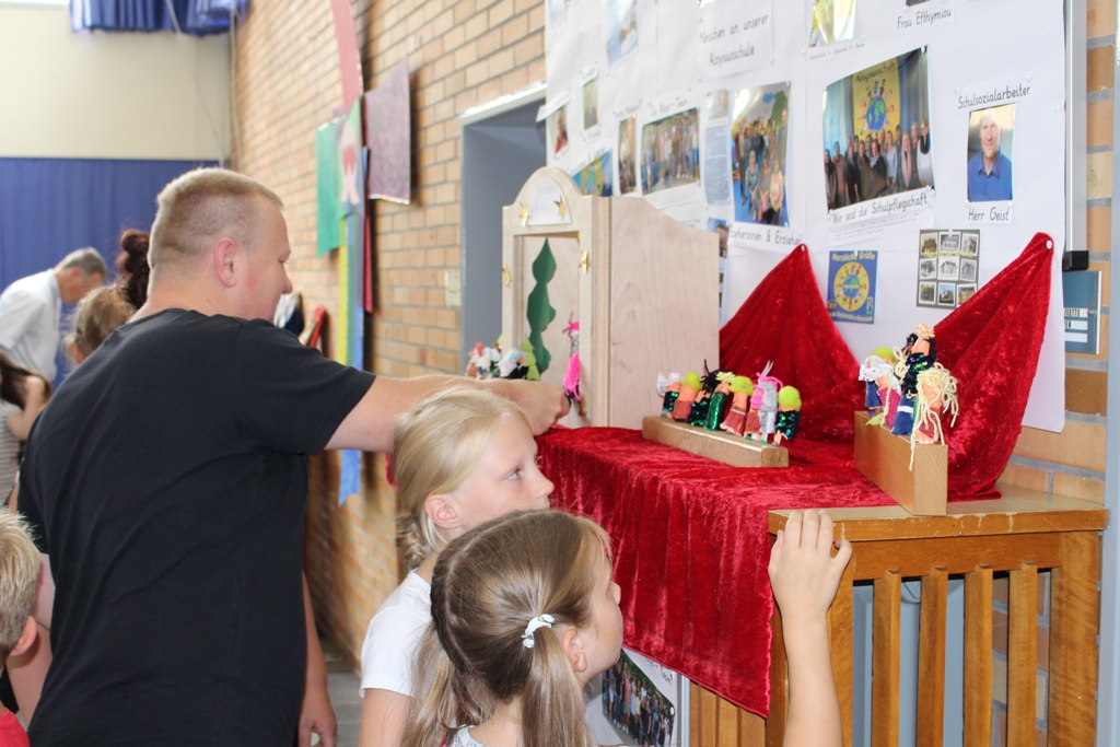 alle Kinder der Aloysiusschule mit Künstlern und verschiedenen Mal-