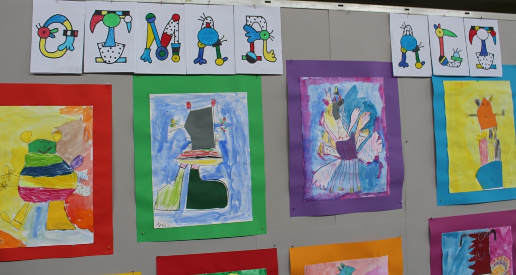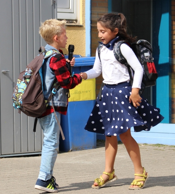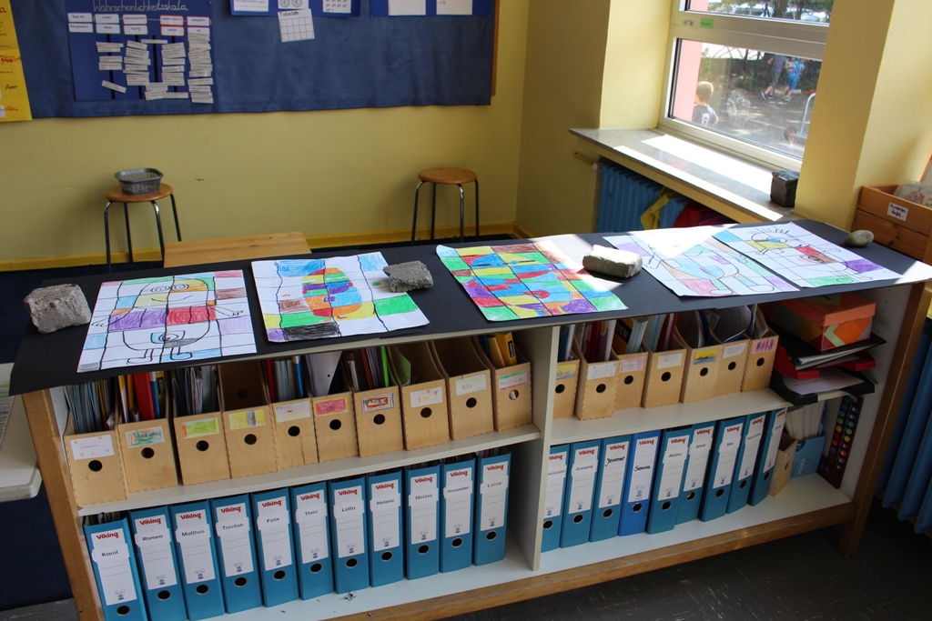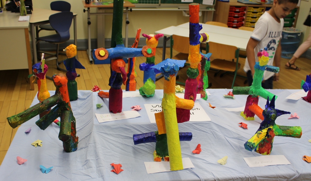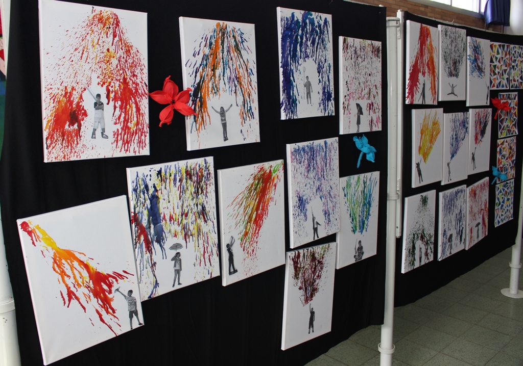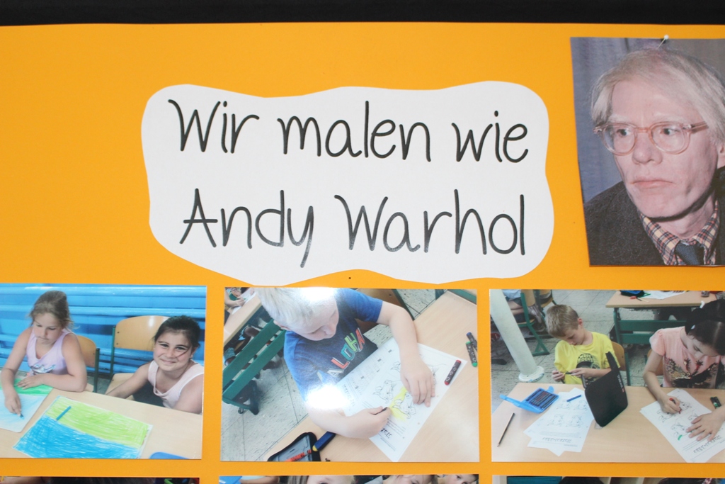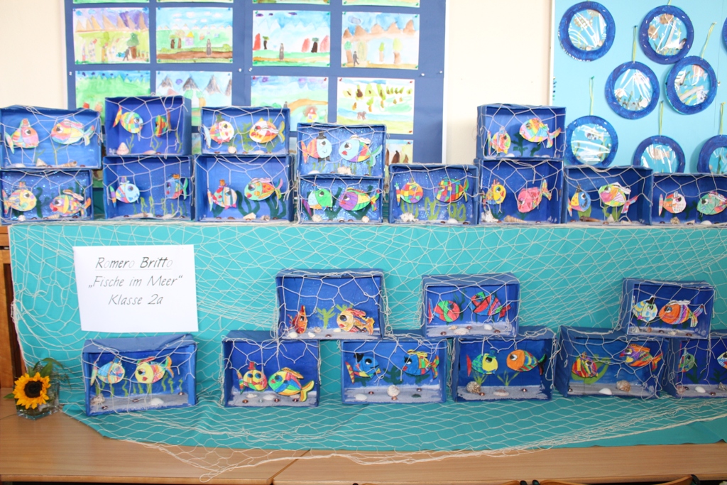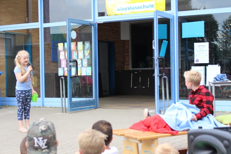 alle Kinder der Aloysiusschule mit Künstlern und verschiedenen Mal-
