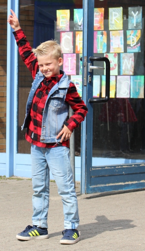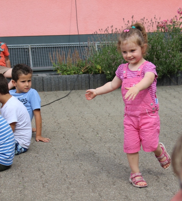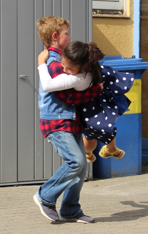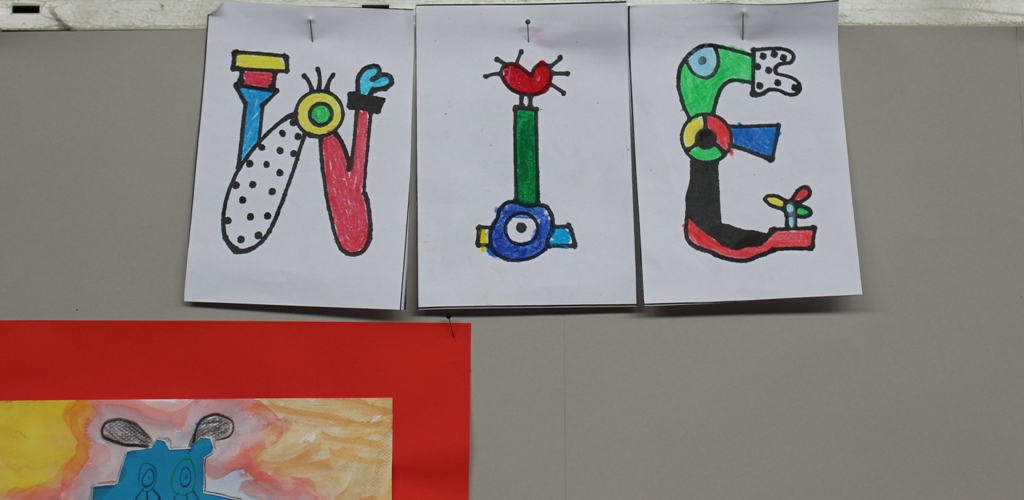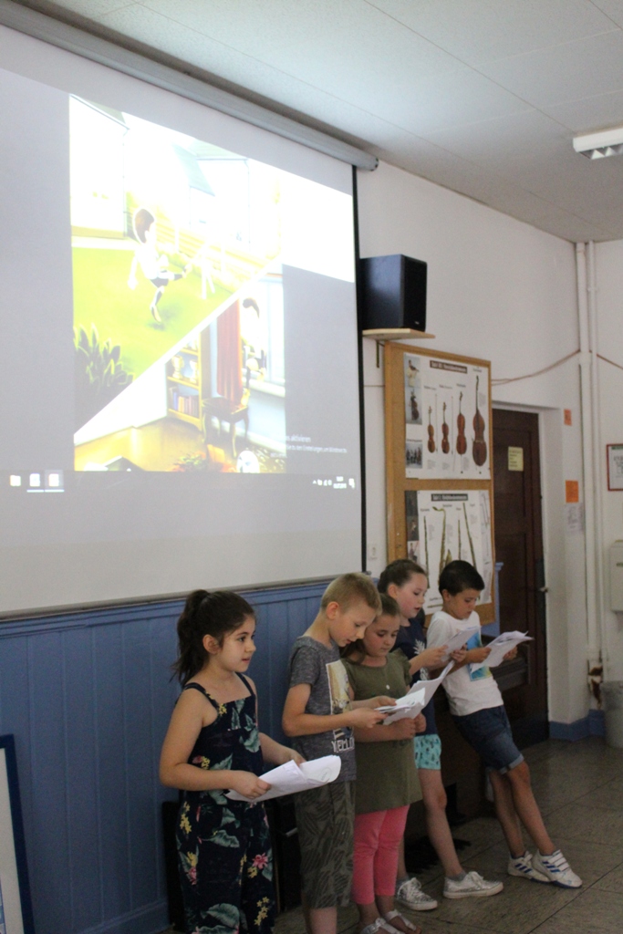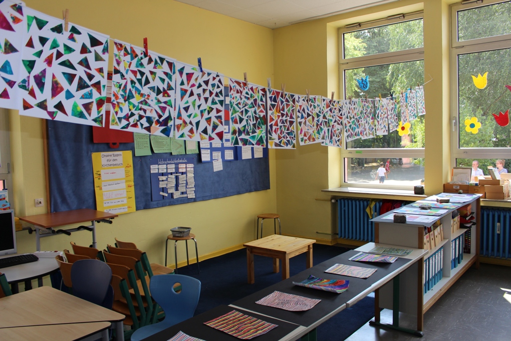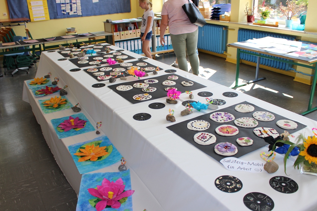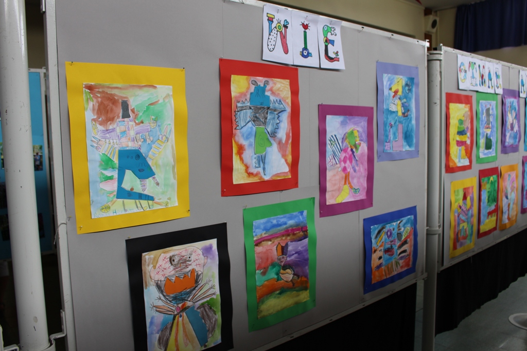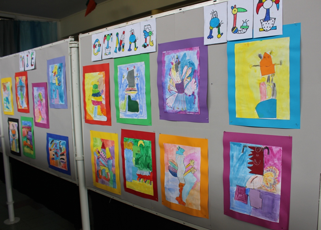 alle Kinder der Aloysiusschule mit Künstlern und verschiedenen Mal-