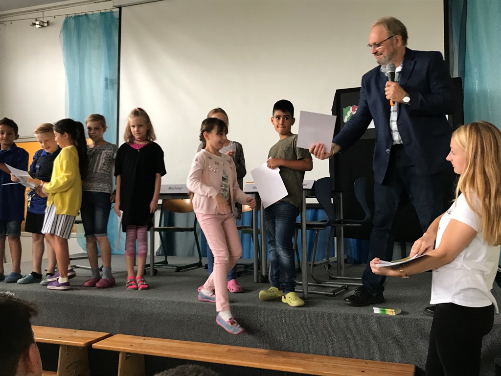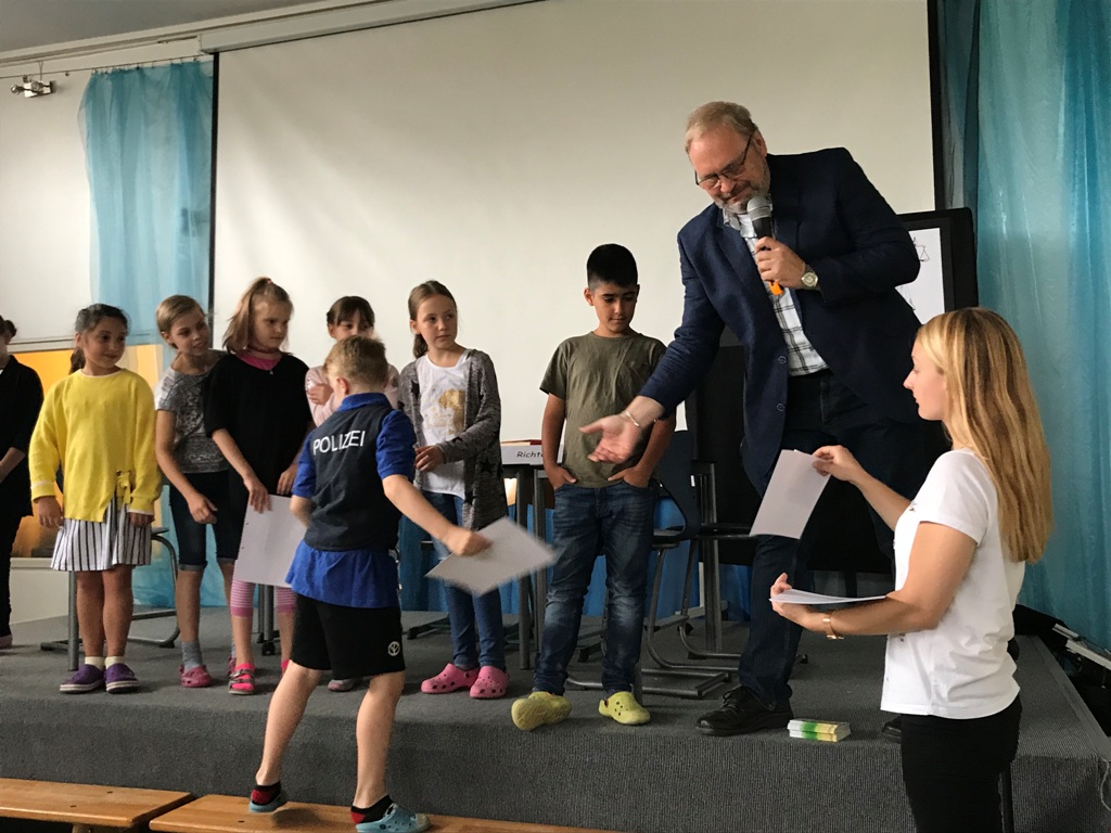 Erinnerungsurkunde und zahlreiche Materilaien. Wir hoffen, dass wir die AG auch