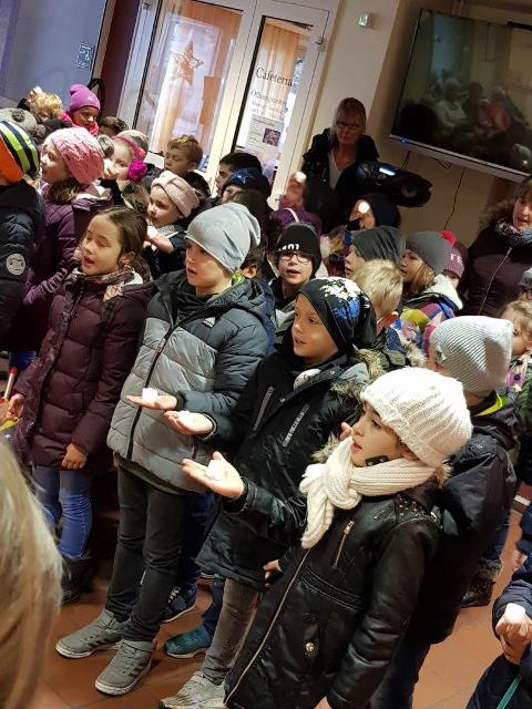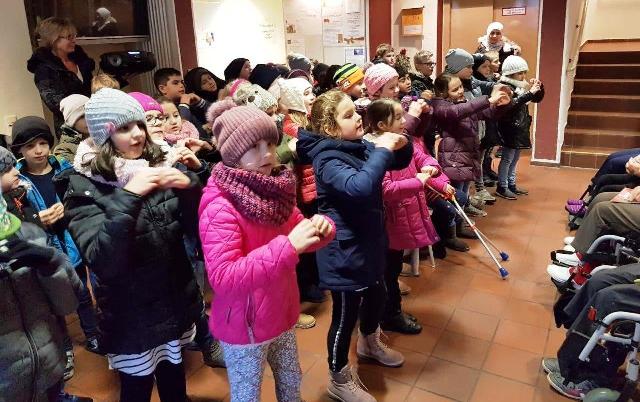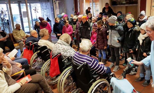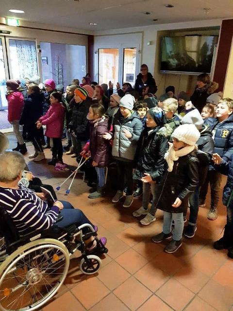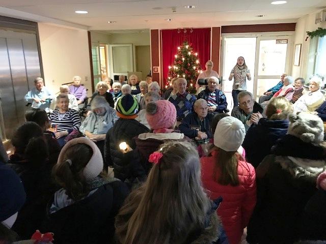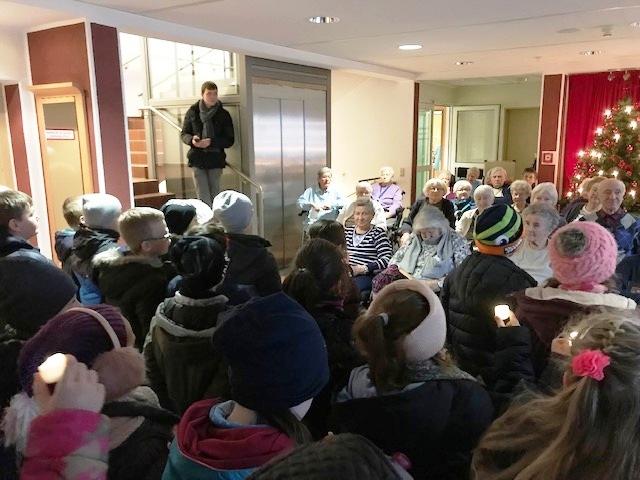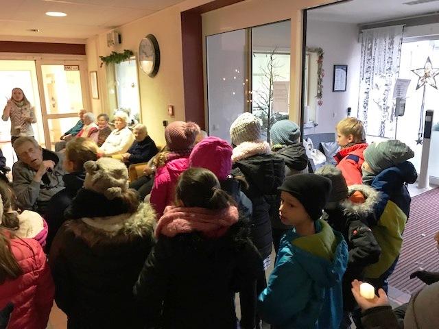 Die Klassen von Frau Marx und Herrn Wilson waren nun schon das dritte Jahr in Folge zum gemeinsamen Adventssingen im Pertheshaus.