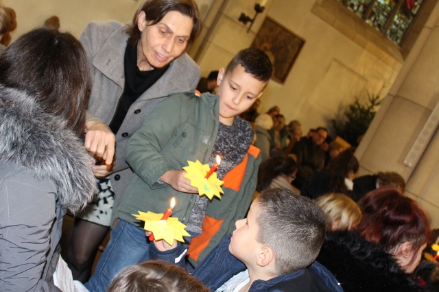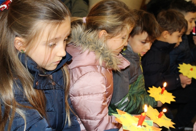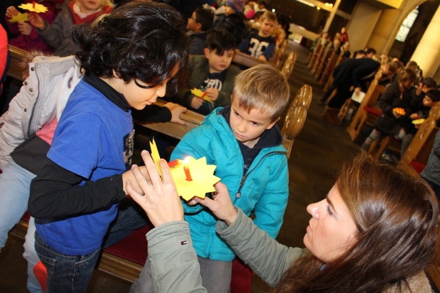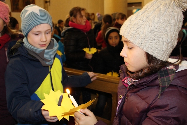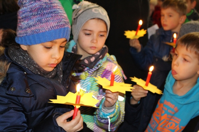 zogen mit dem Licht aus Bethlehem aus der Kirche in die
