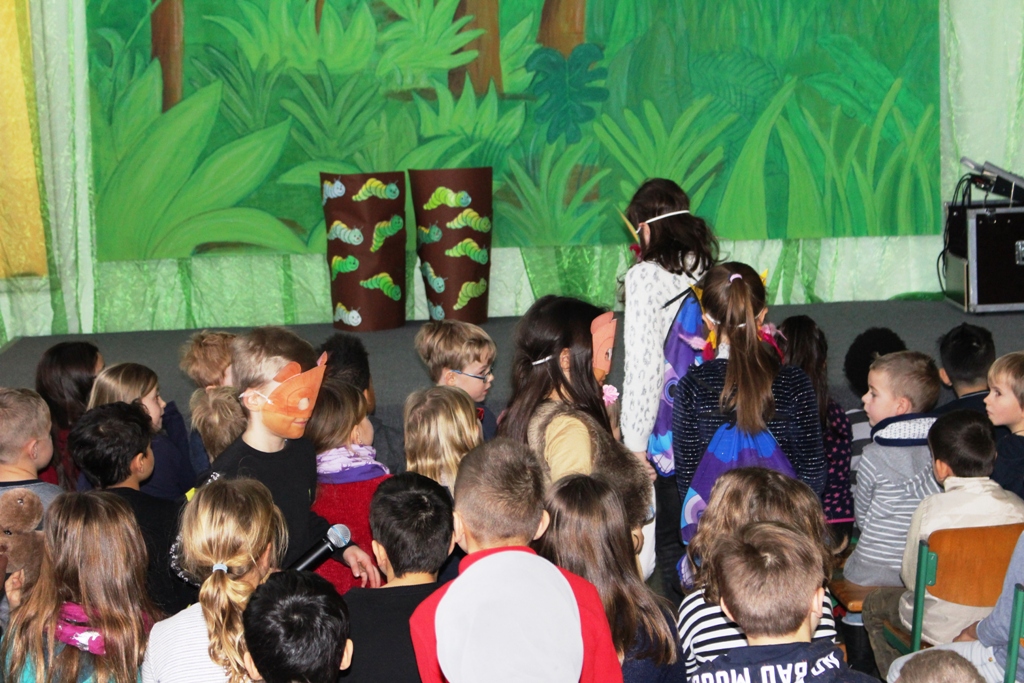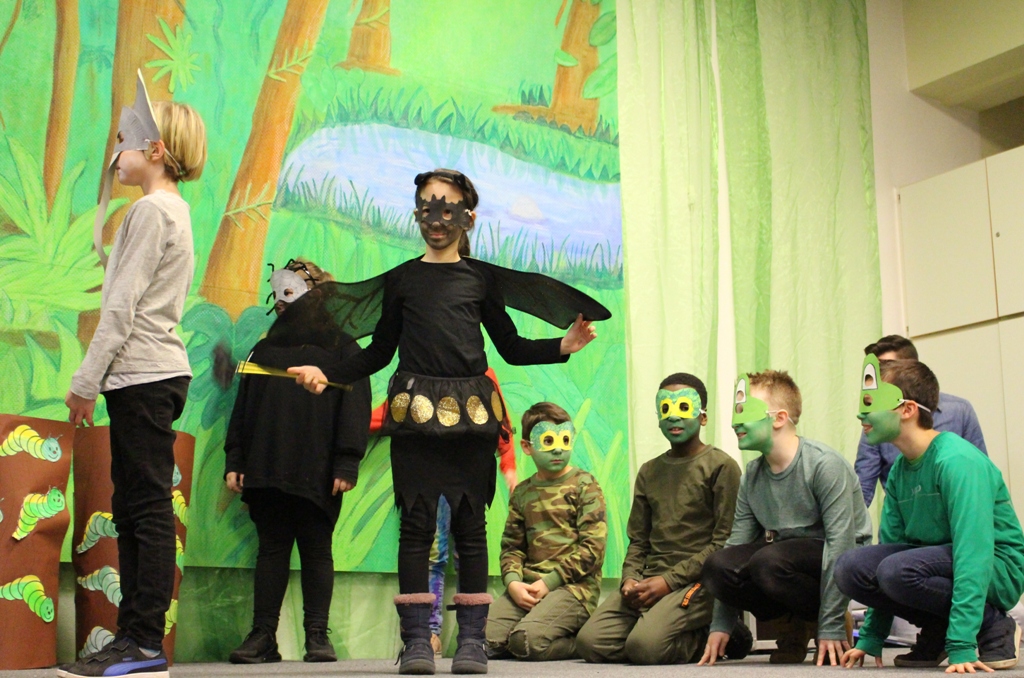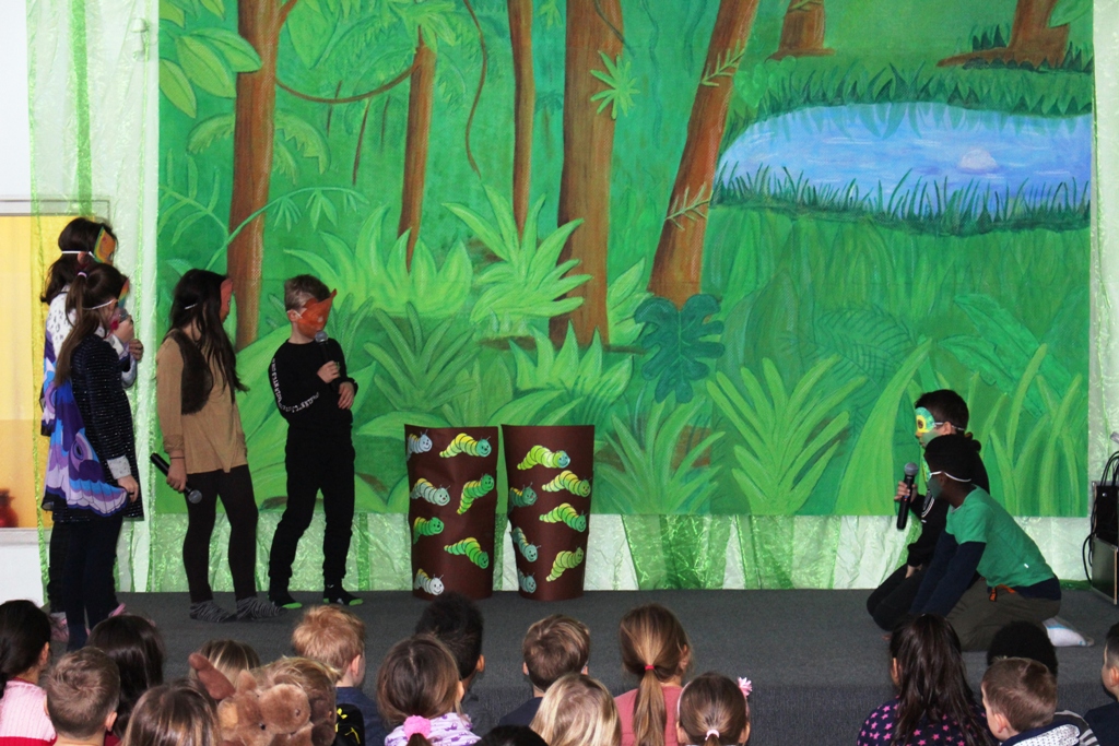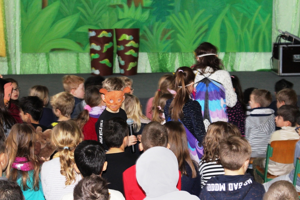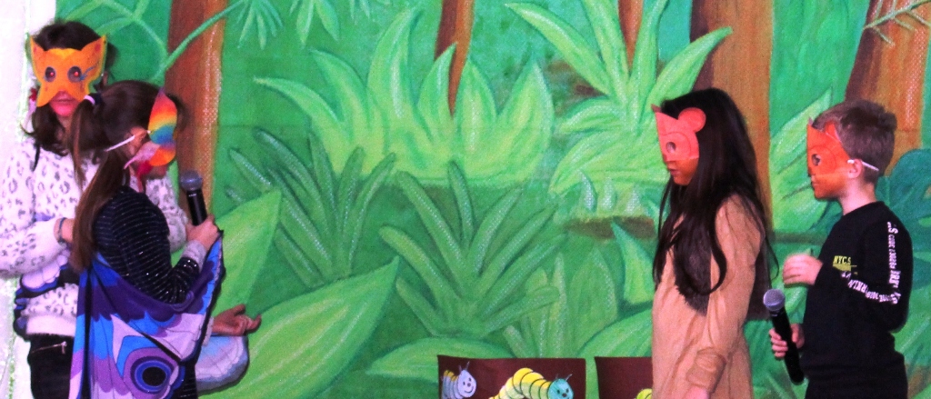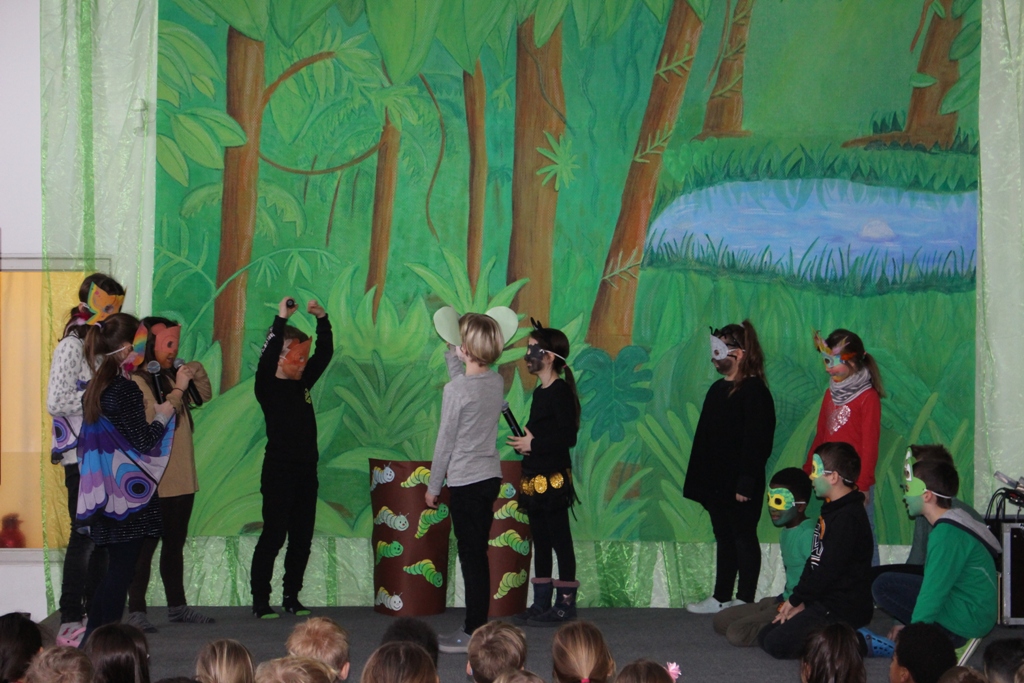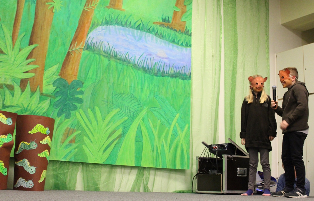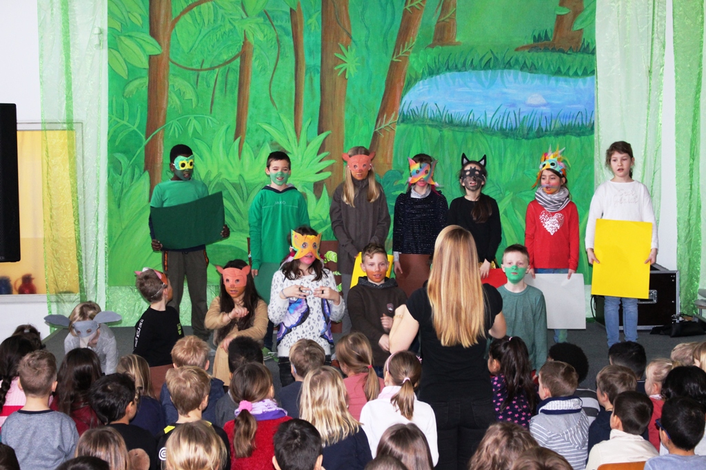 Salten übten die Kinder das Theaterstück "Monkey Puzzle" nach dem