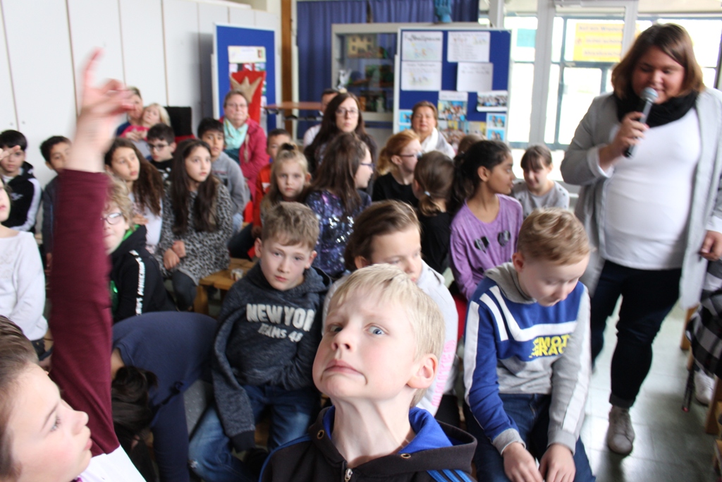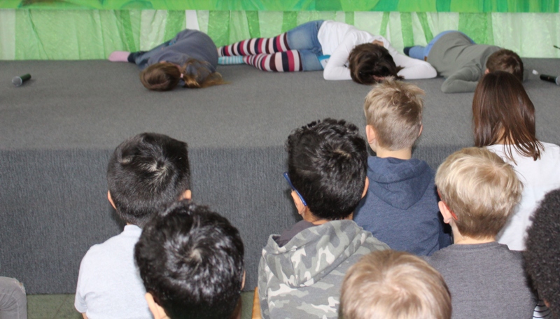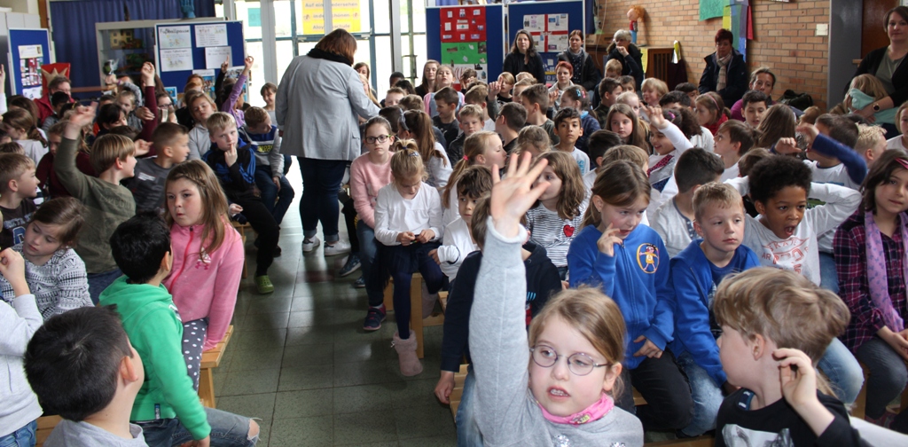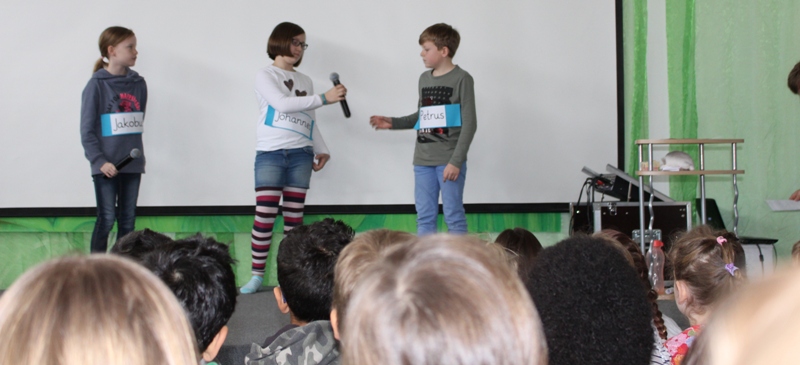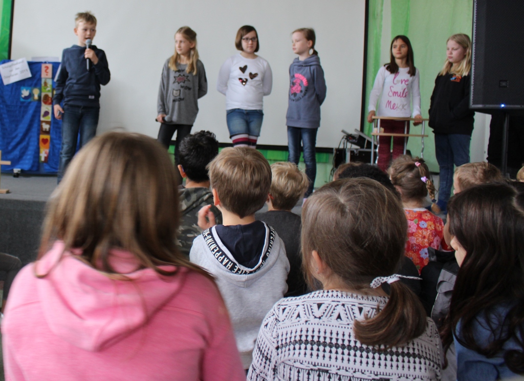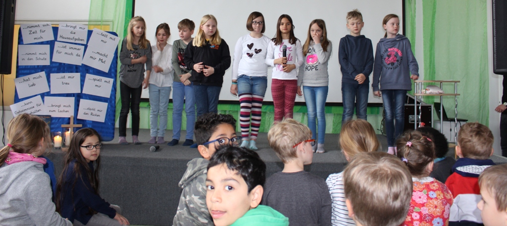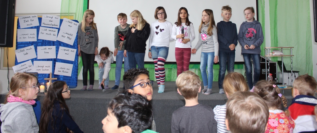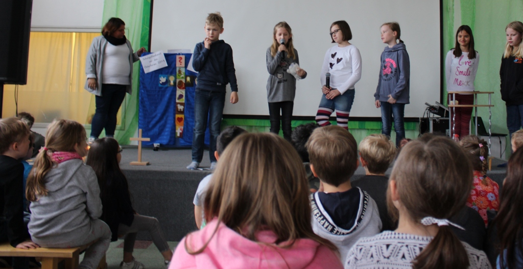 Pausenhalle getroffen, um den Schulgottesdienst zum Thema
