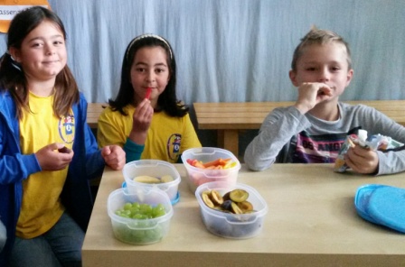 mit dem regelmäßigen "Obstsnack" den Kindern Obst und Gemüse