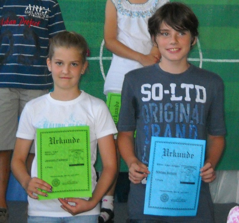 Hier seht ihr das schnellste Mädchen und den schnellsten Jungen der Schule