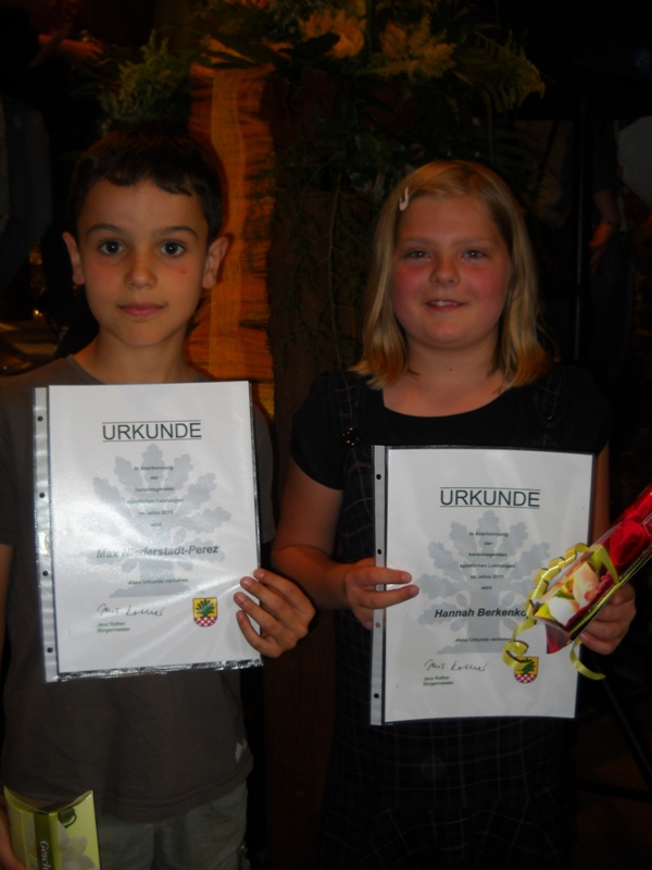 Bei der Sportlerehrung beim Kultursommer am 16.07.2011 auf Haus Opherdicke wurden zwei weitere Kinder der Schule geehrt:
