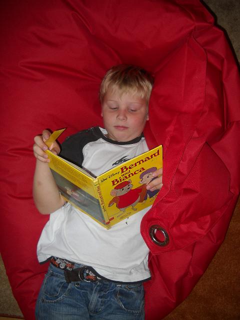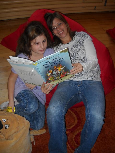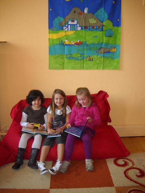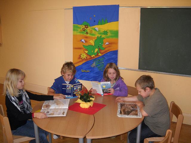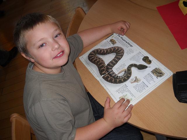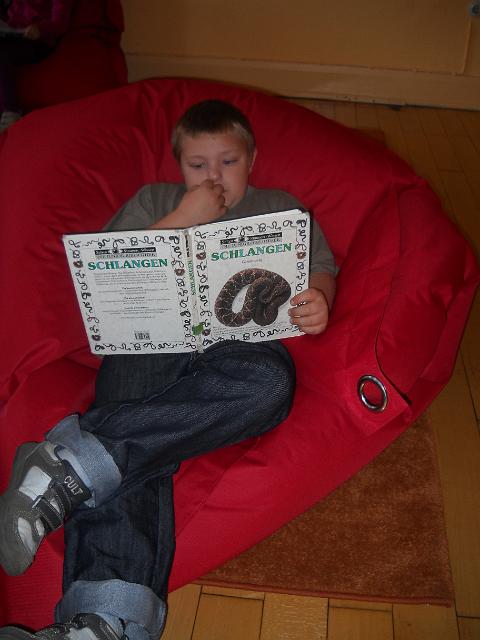 Erst- und Zweitklässler genießen die Gemütlichkeit und entdecken Bücher. Justin liebt Schlangen.