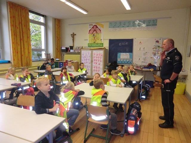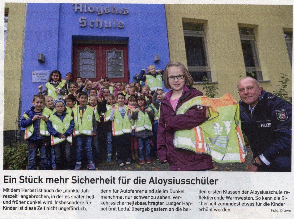 20.10.2015 - Sicherheit für alle Aloysiusschüler Heute hat uns Herr Happel von der Polizei besucht. Er hat am Kinderparlament teilgenommen und alle Kinder daran erinnert, sich aufmerksam im Straßenverkehr zu verhalten. In der dunklen Jahreszeit können die Sicherheitswesten, helle Kleidung und die Reflektoren am Tornister helfen.