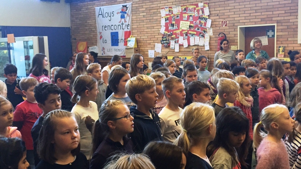 Mit den beiden ersten Klassen hat Herr Happel dann intensiv geübt. Hier findet ihr Fotos aus den Klassen