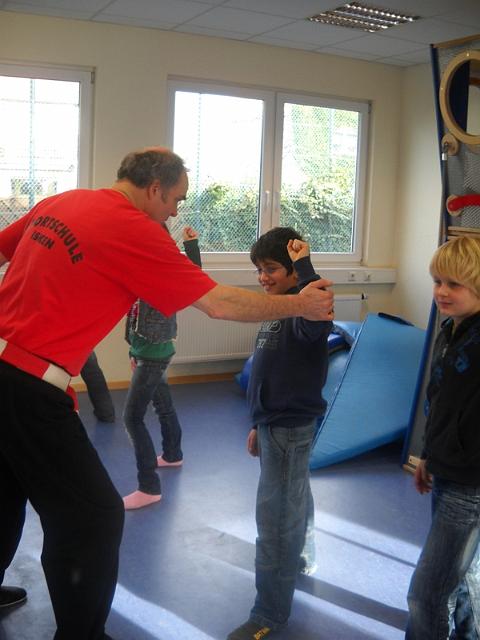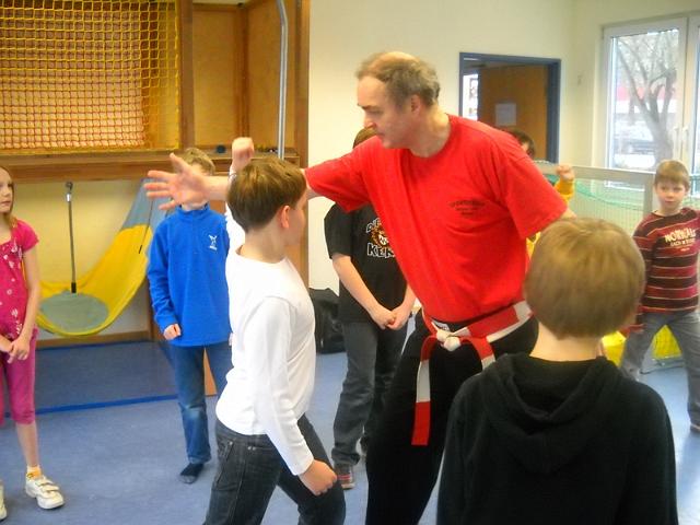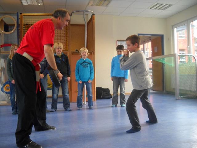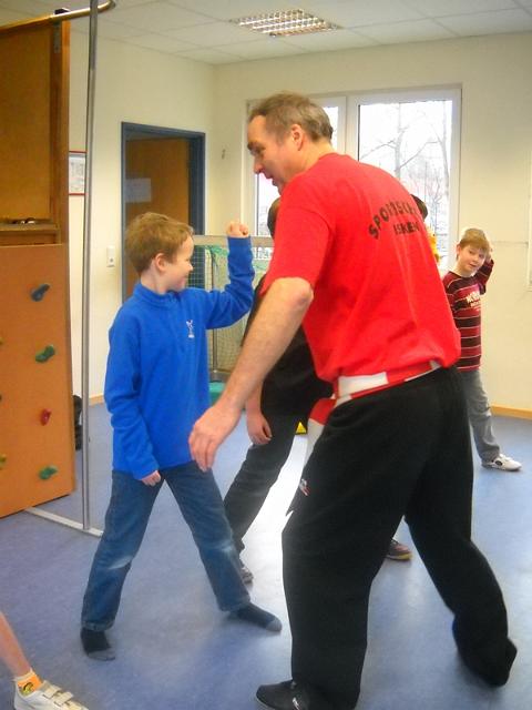 Heute haben wir die Abwehrhaltung geübt. Die ist wichtig, wenn uns jemand