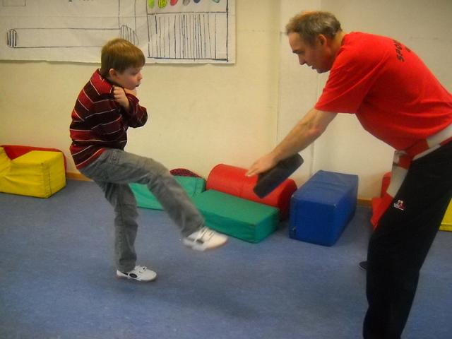 effektiven und - für den Angreifer - sehr schmerzhaften Tritt.